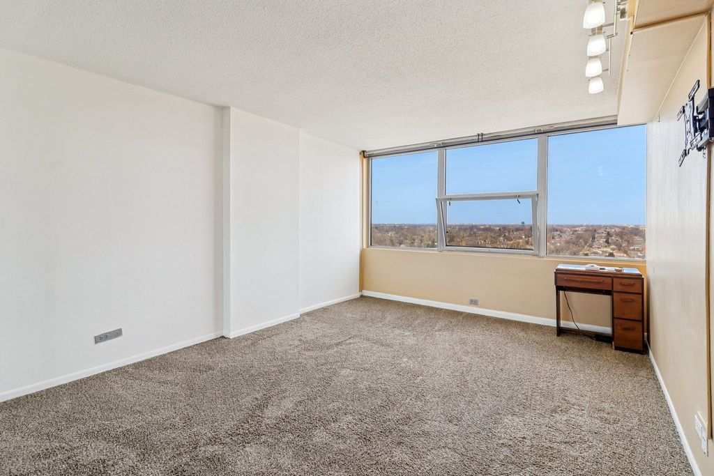 Beautifully updated 1-bedroom, 1-bath condo located on the 14th floor of a secure high-rise in the heart of Elmwood Park. This move-in-ready unit features newer flooring, fresh paint throughout, and a spacious layout. Kitchen offers real wood cabinetry, granite countertops, and newer appliances. Large bedroom with a full wall of windows provides abundant natural light and stunning western exposure with sunset views. Building amenities include laundry and storage, indoor heated garage parking (1 space included), penthouse party room with free Wi-Fi, outdoor pool, and sun deck with impressive skyline views. Convenient location with easy access to the city and suburbs. Walking distance to shopping, restaurants, coffee shops, 24-hour Walgreens, and public transportation. ***Assessment includes all utilities besides electric.***