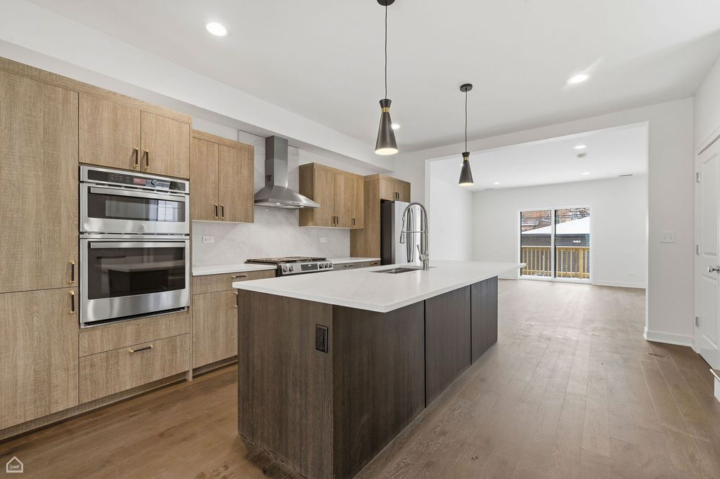 Set in the Brooklyn of the West Loop. New Construction Brilliant Elastic Design Forward Hybrid Single Family Home Offers the Perfect House Hack with Seamless Flexibility Navigating Growth, Life Change and Expanding Investment Opportunity. Rich Contemporary Exterior, Elegant Brick and Limestone Facade with Black Windows paired with James Hardie Siding. Collectively Living as a Full Single Family 3150 Square feet 5-bedroom 4.1 bath spanning 3 levels, Dual Primary Suite, Dual HVAC, Dual Laundry Centers, Dual Kitchen. As designed, integration of lower level is fluid yet flexible offers perfect migration for generational Living, Airbnb, Full Guest Suite, or traditional rental income with all the benefits of a single family offering a spacious duplex-up owner's unit and an English garden-level rental unit. As migrated, upper 2 levels feature 3 Bedrooms, 2.5 Baths with Main floor open concept layout full living room, fireplace, and great room, professional grade kitchen, quartz countertops, stainless steel appliances, walk in pantry, hardwood floors throughout and mud room. Upper level showcases a primary suite with pass thru dual walk-in closets, a spectacular primary bath with dual vanity, freestanding tub, and oversized separate shower plus two generous guest bedrooms, oversized guest bath with double vanity sinks and laundry center. English garden level offers 2 Bedrooms and 2 bath, full living room, Full kitchen with quartz, stainless. Engineered flooring and carpet with primary bedroom in suite. Zoned HVAC and Laundry Centers, Large rear deck, back yard plus two-car garage. This is a true showstopper, perfect for those who want to start to invest but also live in a home. Perfect 21st century Dynamic Living. MOVE IN READY