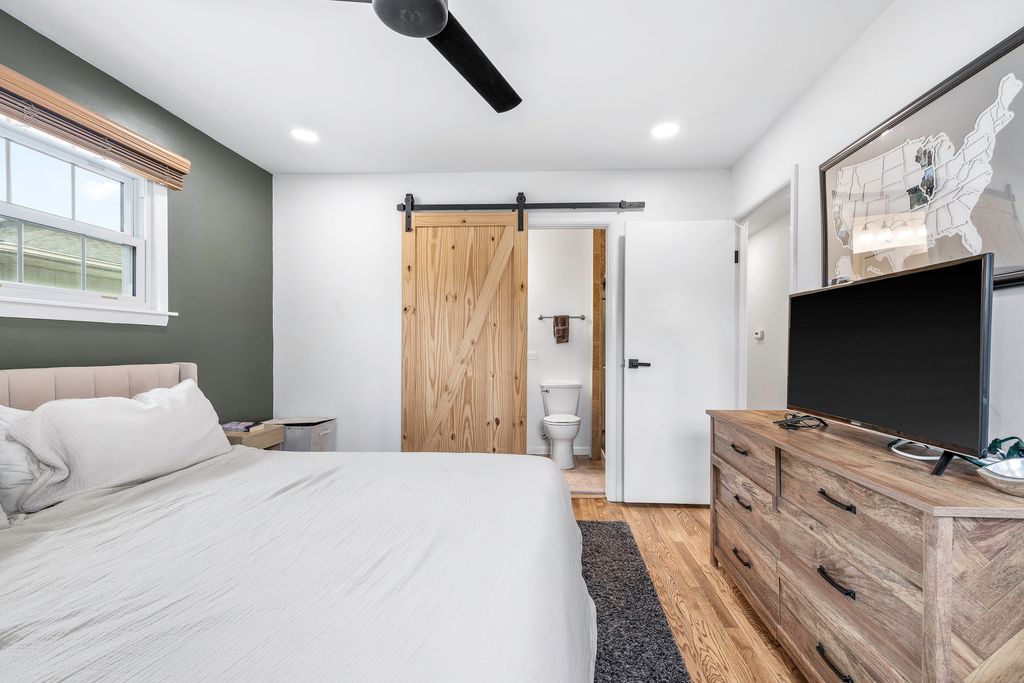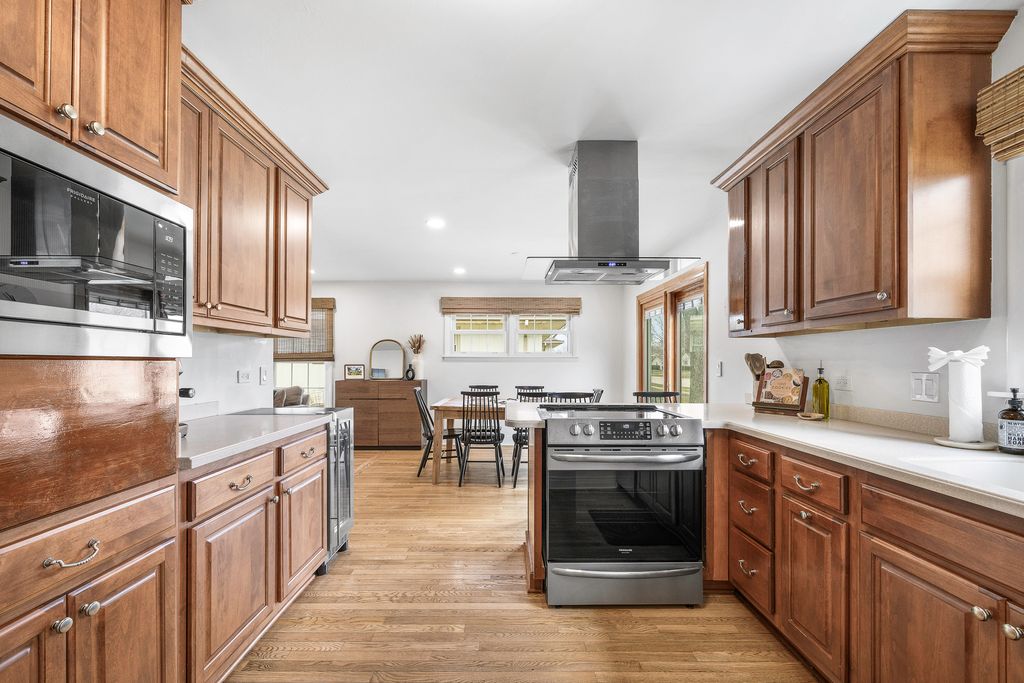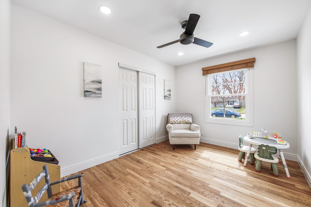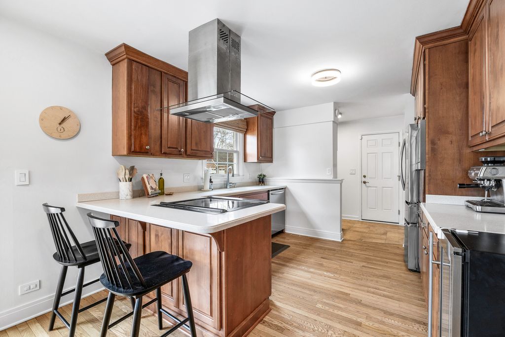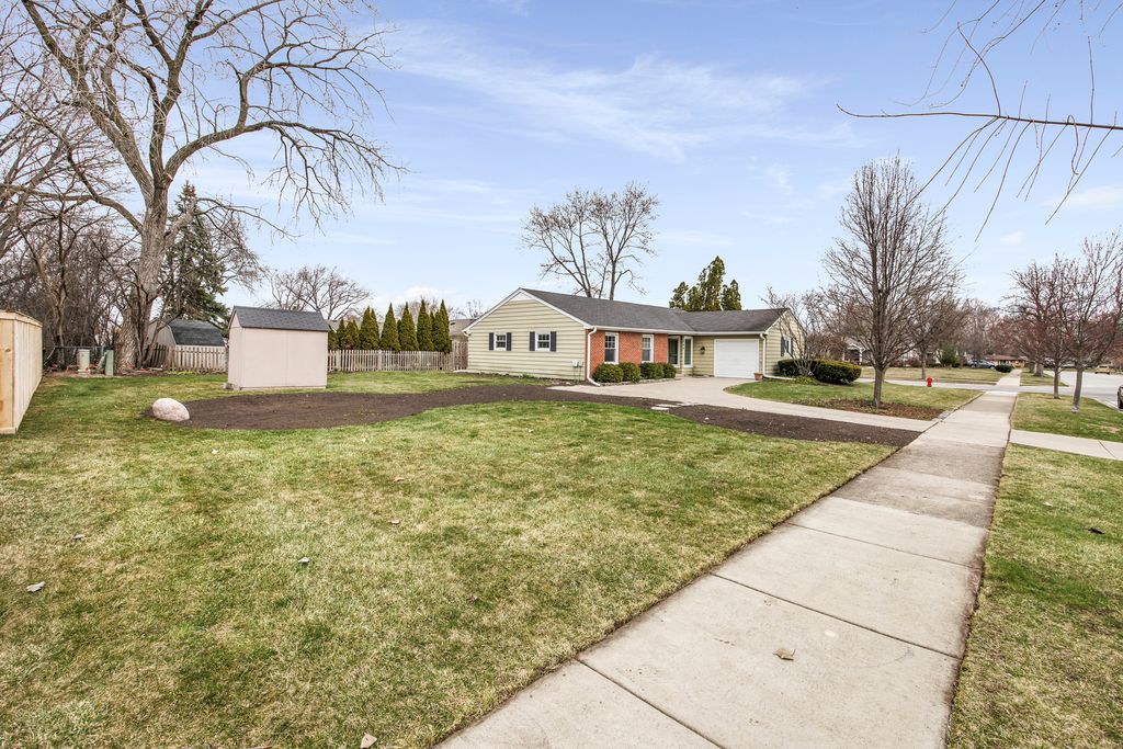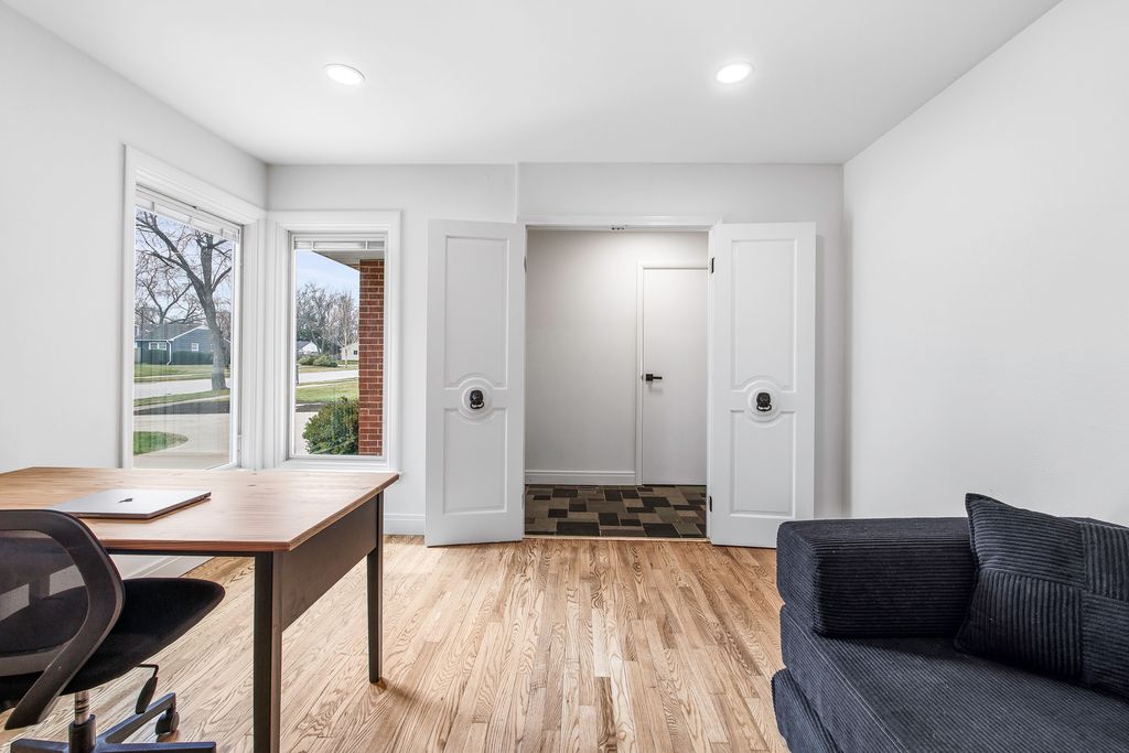 Welcome to this charming ranch style home situated on a prime corner lot in Arlington Heights. Thoughtfully updated with modern living in mind, this home offers a functional layout featuring a private office retreat while maintaining an open concept living and dining area. The redesigned kitchen is ideal for both everyday living and entertaining, showcasing beautiful cabinetry, newer appliances (2023), a wine fridge, and ample countertop space. Sliding door access leads directly to the brick paver patio-perfect for dining alfresco. Original hardwood floors have been restored and flow throughout much of the home, complemented by updated 5" baseboard trim, neutral color palettes, new closet doors, blinds, and modern light fixtures with LED overhead lighting and dimmer switches. Abundant natural light fills the home through well placed windows. The home features three bedrooms, all with hardwood flooring, including a primary suite with a full en-suite bath. Additional highlights include a dedicated laundry area, service door, and attached 1-car garage. Major updates include PVC sewer line, hot water heater (2023), and kitchen reconfiguration. Enjoy outdoor living with a semi-fenced yard, perennial flowers, storage shed, brick paver patio, concrete driveway set on a private corner lot. Conveniently located near parks, schools, shopping, dining, and all the best Arlington Heights has to offer, this home offers both comfort and accessibility. Make your showing appointment today!