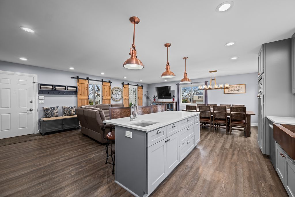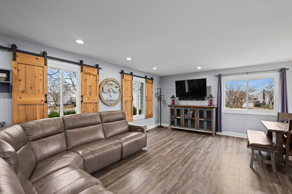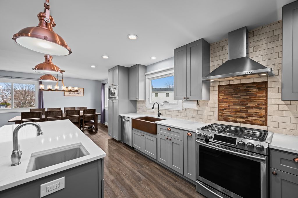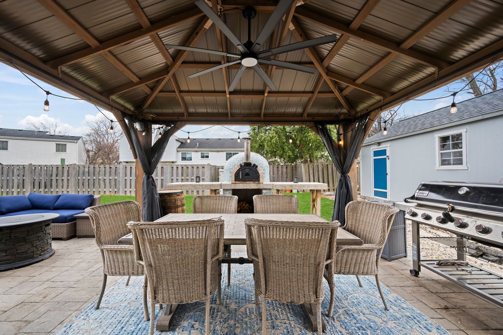 The home of your dreams awaits you with this stunning, completely remodeled home in the highly sought-after Northwoods neighborhood of Buffalo Grove! This fabulous, northeast-facing home is truly a must-see! The main level has been reconstructed to create a huge gourmet kitchen that opens to the living and dining rooms creating a very spacious and open floorplan! In addition, almost every inch of this amazing home has been updated including roof, siding, windows, doors, closets, flooring, recessed lighting and light fixtures, ceiling fans, and the list goes on and on! The beautiful and practical chef's kitchen boasts large center island with breakfast bar, fruit/vegetable sink and extra storage plus 42 inch gray cabinets, quartz countertops, custom tile backsplash, stainless steel appliances with high end range hood, oversized copper farmhouse sink, and so much more...WOW! Everything in this upscale kitchen was thoughtfully designed to be both attractive and practical! This vast kitchen is completely open to the large dining and family rooms, making this main level great for entertaining or just every day living. The second level will not disappoint with a large primary suite offering huge walk-in closet and reconstructed bathroom with double-faucet trough sink and oversized, custom tile, walk-in shower! The remaining three bedrooms have access to yet another full, recently updated bathroom with farmhouse sink vanity and custom tile shower as well. The lucky buyer will be pleased to find even more living space in the lower level family room with beautiful custom flooring, an updated half bathroom, plus sliders leading to the amazing backyard. Those who enjoy additional space will be delighted to go down a few steps into the light-and bright finished, English basement! This large recreation room has a convenient exercise area and built in activity wall. A large laundry room and utility/storage room complete this additional space. Just when you thought it could not get any better, wait until you see this amazing backyard oasis!! The newer covered patio with stamped concrete offers a shaded place to relax and unwind after a long day. You'll be especially happ y with the built-in ceiling fan and lighting. It also includes an attached flat screen TV plus a huge, built-in, wood burning oven for pizza or whatever else you enjoy. There is also a built-in brick firepit and huge playset in this awesome fenced yard, both included complimentary in the sale. Another rarely-found feature for this special home is a enormous, over 250 square feet outbuilding! This rarely found feature is currently being used as a workshop but there are so many options for this versatile building. Ideally situated on a large, pie-shaped lot on a quiet cul-de-sac. 2 car attached garage with newer door. Award-winning schools including District 102 and Stevenson HS, which is amongst the best high schools in the nation! Close to everything including shopping, restaurants, library, golf clubs, parks, fitness centers, Metra station, the new Clove entertainment area plus just a short walk to Pritchett Elementary School. Better hurry...a rare gem like this with terrific schools and so much to offer won't last long!