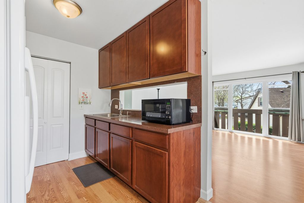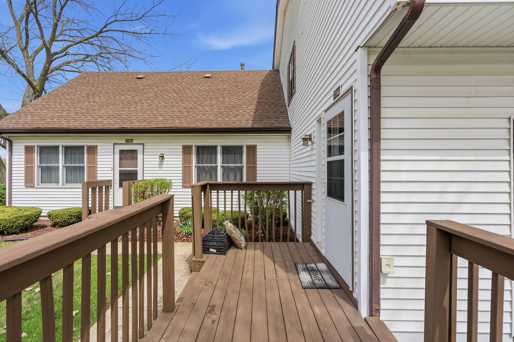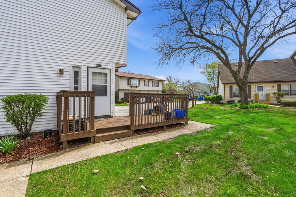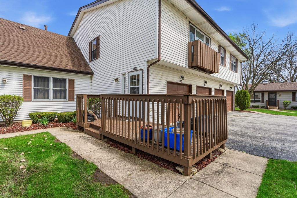 Welcome to this lovely one-level townhouse-style condo in POPULAR Frankfort Square! This inviting home offers easy, maintenance-free living with a bright, sun-filled living room featuring beautiful wood laminate flooring and a large window that provides wonderful natural light and pleasant views. The well-appointed kitchen boasts rich cherry cabinets and ample workspace, while the separate laundry room adds everyday convenience. This home offers three comfortable bedrooms and a nicely updated full bathroom, remodeled in 2021 with today's desirable finishes. Additional highlights include a one-car attached garage with extra storage, newer air conditioner (2022), and a spacious outdoor deck-perfect for relaxing or entertaining. With its functional layout, tasteful updates, and desirable one-level living, this home is an excellent opportunity in a sought-after location.