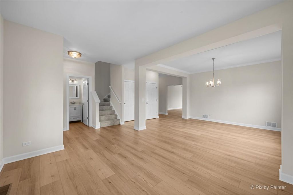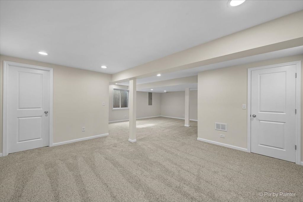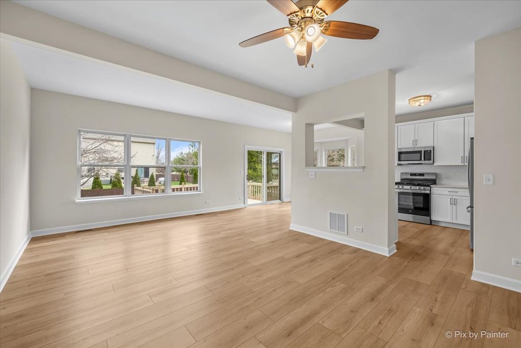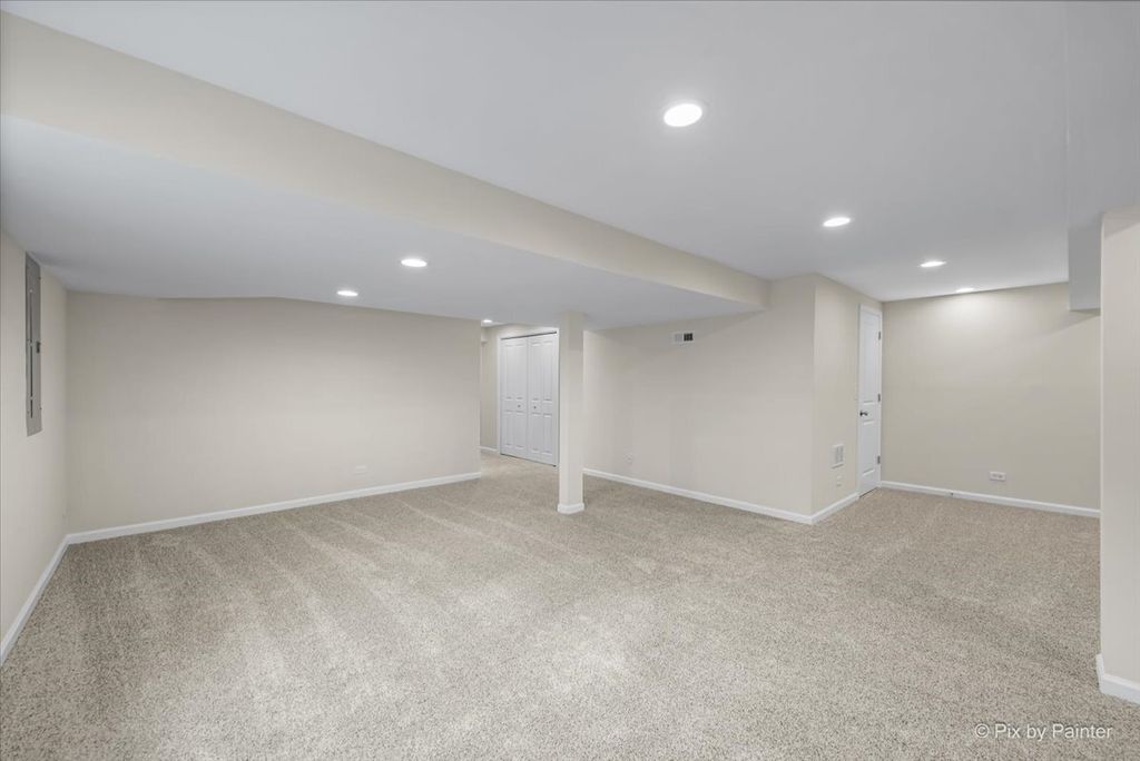 This is the one!!! This gorgeous 4 bed/2.5 bath home has been completely redone and is just stunning!!! Curbside appeal galore as you notice the adorable front porch with recessed lighting. Opening the front door, you immediately are greeted the open floorplan featuring 9 foot ceilings, a living/dining room combination with all new flooring, new oversize baseboards, professional painting, and crown molding in the dining area. Walk into the spacious family room with the same brand new flooring which extends into the eating area/table space and the fabulous brand new kitchen! White shaker soft-close 42" cabinets, brushed nickel hardware, quartz counters, deep undermount kitchen sink with new faucet and disposal, brand new ss appliances, pantry closet, and subway tile backsplash. A chef's dream!!! 1st floor 1/2 bath has the same new flooring as well as new vanity and fixtures--so cute!! The second floor begins with all brand new carpet/pad, and an adorable loft area that would be ideal for reading area, play area, or office work-space. The generously sized primary bedroom has a huge walk-in closet and an ensuite bath with new flooring, a brand new double vanity, quartz countertop, large soaker tub, and separate shower. 2nd and 3rd upstairs bedrooms share a Jack & Jill bath with brand new flooring, brand new double vanity, and quartz countertop with brand new faucets. 3rd bedroom has a walk-in closet. 2nd floor also features super-convenient laundry area with brand new washer and dryer. Finished basement has brand new carpet, 4th bedroom (can also be a fantastic home office or guest room), and two separate family room/rec room areas--so great for entertaining!!! Backyard has an 18x13 deck and a wonderful apple tree that produces so many apples every year!!! Entire house has new light fixtures and ceiling fans along with satin nickel door knobs and hinges. Roof was replaced in 2025. Furnace & a/c new in 2025, water heater new in 2024, and sump pump new in 2026. Riverbend neighborhood is golf-cart friendly, has great parks and walking paths, and is so close to Russell Woods forest preserve and sled hill! Small-town living at it's finest! All this is waiting for you--nothing for you to do but move in and ENJOY!!!