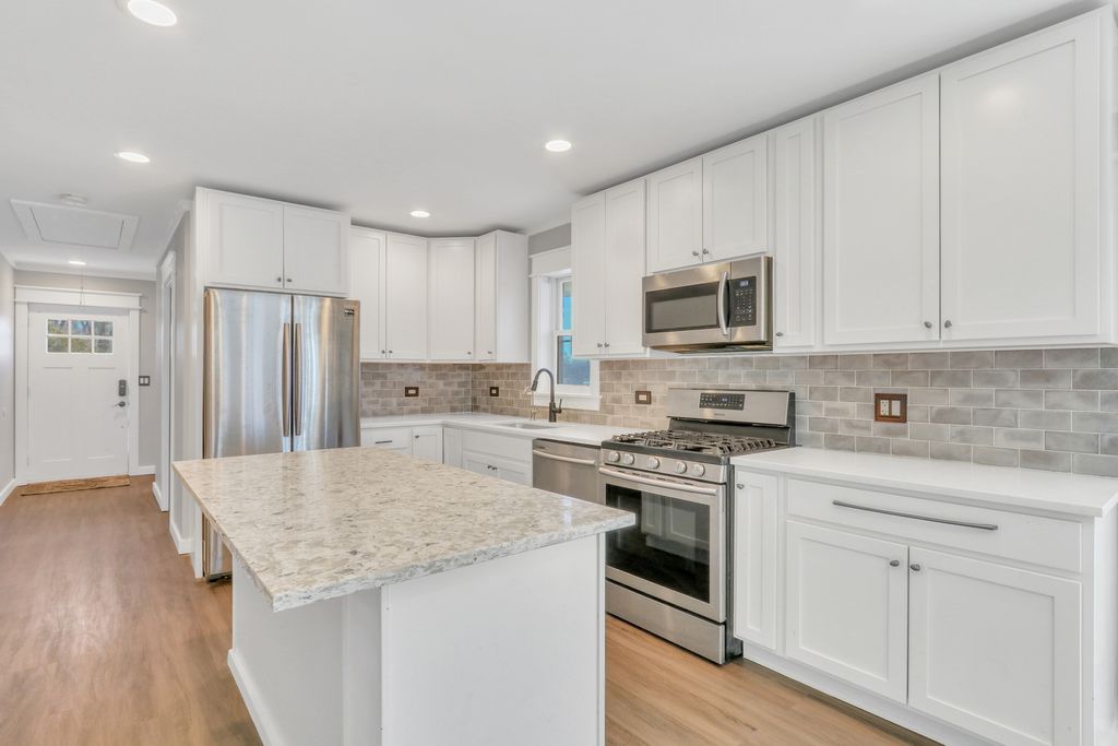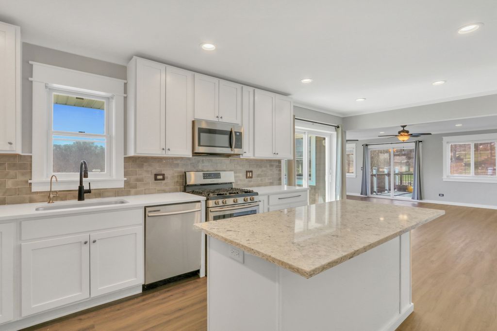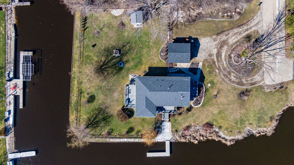 OVER 330' OF CHANNEL FRONTAGE to THE CHAIN OF LAKES & Petite Lake!! WATER FRONTAGE--You will be hard pressed to find another property like this! 2 BED / 2 BATH + OFFICE. Situated on a peninsula style double lot, you are surrounded on two sides with beautiful channel front access to the popular Chain of Lakes and Petite Lake. Private dock allows you to take a few steps and you are on the boat! With .63 acres, you have a stunning view out of every window. Large, fenced-in back yard with shed, firepit and composite deck gives you sunset views. The well sized deck off the kitchen will give you sunrise vibes and uninterrupted views of the water. But what about the house?? STUNNING!! Fully renovated in 2020, you are greeted with clean lines, stylish kitchen, new doors, trim, hardware, light fixtures and so much more. As you enter, the one-story living space is well planned and move-in ready. Kitchen opens up to eat-in space and flows to the entertainment ready living room. Recessed lighting and luxury vinyl plank flooring throughout. Large master suite with renovated bathroom, dual sink vanity and custom walk-in shower. 2nd bedroom with ensuite bath and offers a great flex space that can be used as an office, closet or extra living space. Great entry way to store all of your coats and shoes, main floor laundry and utility room with owned water softener. So many updates have been done! Fiber cement siding, Trex decking, water heater (2025) furnace (2020) Roof is apprx 10 yrs old. FLOW THROUGH FOUNDATION!! This is a must on the Chain and it has been done for you! Plus a steal sea wall wraps the property. Move in and start enjoying!!