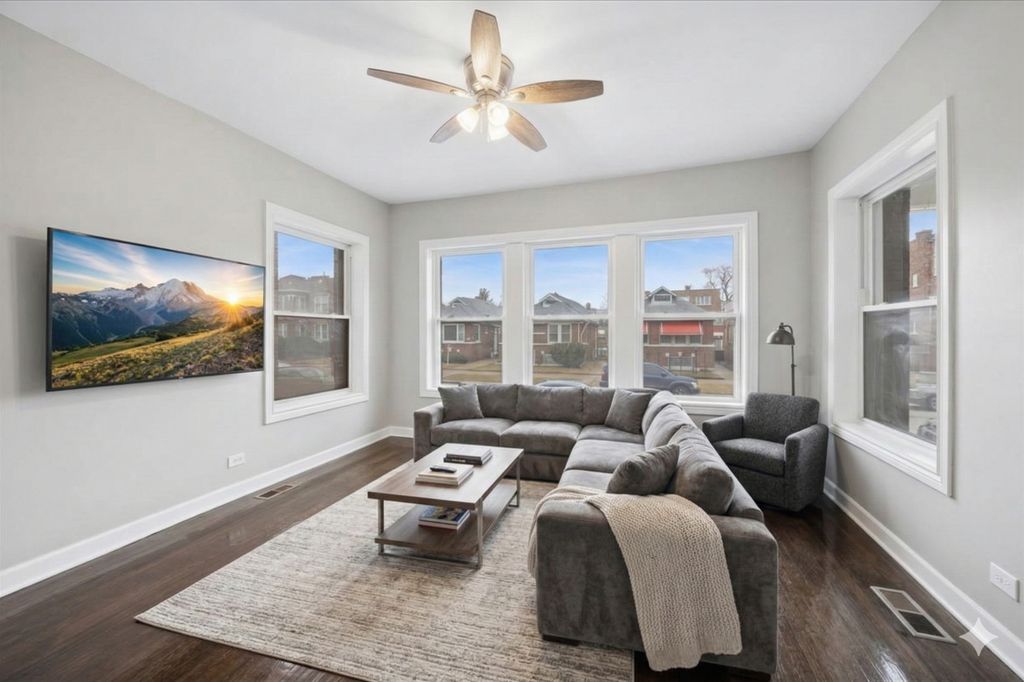 Welcome to the perfect blend of classic Chicago architecture and high-end modern luxury. Located in the heart of the highly desirable Auburn Gresham neighborhood, this stunning brick two-story has been completely reimagined through a professional, top-to-bottom renovation. As you step inside, you are greeted by an expansive, sun-drenched living and dining area highlighted by gleaming hardwood floors that flow seamlessly throughout the main level. The designer kitchen is a true showpiece, boasting elegant dark brown cabinetry, premium quartz countertops, and a full suite of stainless steel appliances set against stylish, durable vinyl flooring. The functional layout includes a convenient main-floor bedroom, while the second level offers three massive bedrooms, including a unique tandem room perfect for a home office, nursery, or an oversized walk-in closet. The transformation continues in the finished basement, which features a massive family room area with modern vinyl flooring throughout and a private fifth bedroom-ideal for related living or a guest suite. No detail was spared in this gorgeous rehab, providing the ultimate peace of mind with a complete overhaul of the home's infrastructure. These extensive updates include all-new electrical, new plumbing, and a brand-new HVAC system, complemented by newer energy-efficient windows for year-round comfort. The exterior is just as impressive, featuring brand-new cement sidewalks and walkways surrounding the home, leading to a secure two-car garage. With every major system updated and high-end finishes at every turn, this turn-key residence is ready for you to move right in.