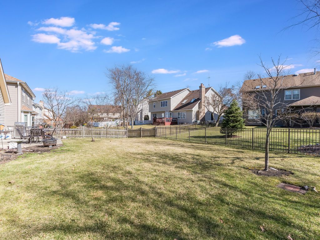 This beautiful Siefert-built home offers exceptional curb appeal and thoughtful updates throughout. Gleaming hardwood floors flow across the entire first floor, creating a warm and inviting atmosphere. The kitchen features modern appliances, a convenient planning desk, and ample table space-perfect for everyday living and entertaining. The spacious family room is the heart of the home, showcasing a stunning fireplace flanked by custom built-in cabinetry. French doors open to a back patio overlooking a huge, fenced yard-ideal for outdoor gatherings and play. A first-floor laundry room adds convenience. Upstairs, a beautiful oak staircase leads to the luxurious primary suite complete with a walk-in closet and updated spa-like bath featuring a newer shower. Three generously sized guest bedrooms provide plenty of space for family or visitors. The finished basement offers fantastic additional living space, including a recreation room, separate exercise or playroom, and a large storage area. The 2-car garage includes a side entry door, durable epoxy flooring, and pull-down attic stairs for even more storage. Major updates include furnace (brand new March 2026 with a 2-year and 10-year warranty), sump pump (2013), siding (2011), newer dishwasher, updated lighting, and more. Landscaped and move-in ready, this home truly combines quality, comfort, and style.