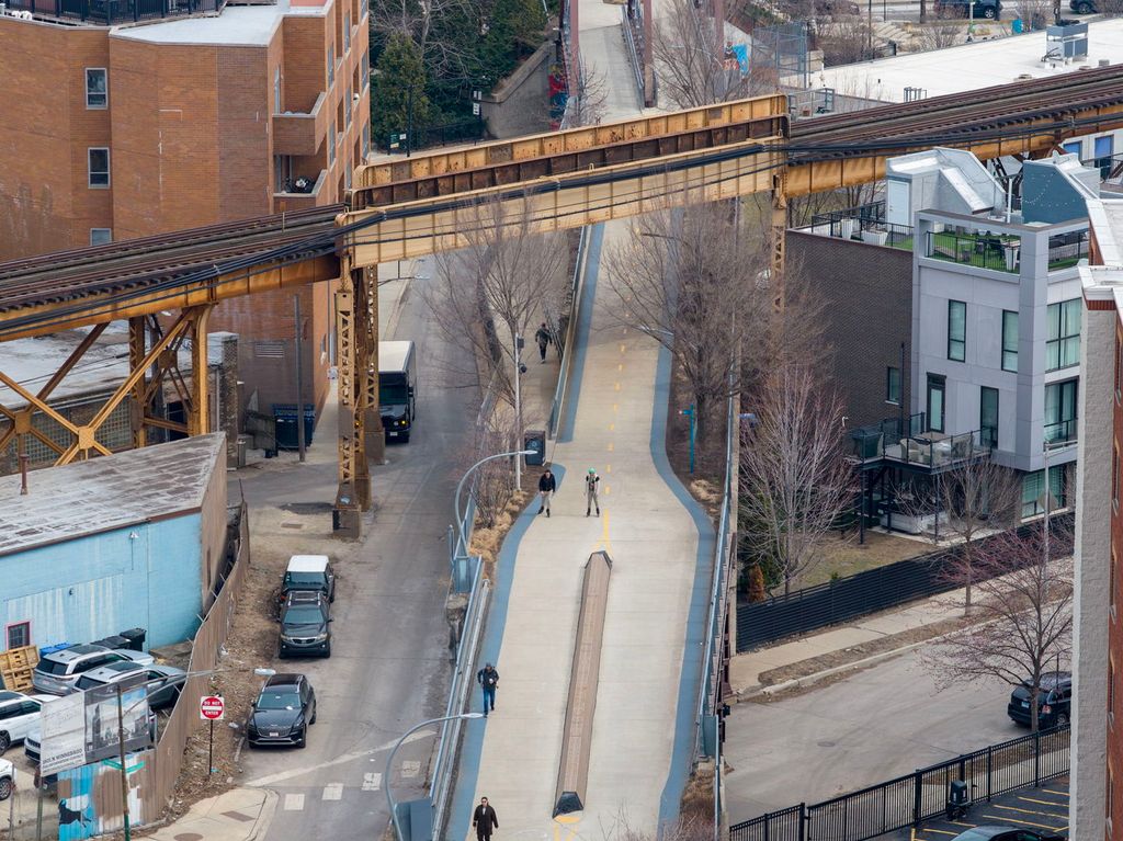 Situated in the heart of Bucktown, this stunning corner 2-bedroom, 2-bath condo offers picturesque views overlooking the iconic Bloomingdale Trail (The 606) and is just steps from everything Bucktown and nearby Wicker Park have to offer! Step into a bright, open-concept living and dining area filled with natural light from multiple exposures, featuring beautiful hardwood floors and a cozy gas fireplace. The seamless layout flows into the updated kitchen, complete with white cabinetry, granite countertops, stainless steel appliances, and an expansive breakfast bar. The primary bedroom has an en-suite bath with a double-sink vanity, while the second bedroom and full bath provide flexibility for guests, a home office, or additional living space. In-unit laundry adds everyday convenience. This boutique elevator building offers desirable amenities including a common roof deck, bike storage, and optional internet through HOA (Google Fiber available for $49.20 per month). One assigned exterior parking space (#16) is included in the price! Recent unit updates include: AC (2021), Furnance (2022), washer/dryer (2021), refreshed grout in both bathrooms (2021), and a new refrigerator (2025). Recent building improvements include tuckpointing and necessary window sealing (2025) and a renovated elevator project (completed March 2026)! Located just 0.2 miles from the Western CTA Blue Line Station, with easy access to I-90/94, commuting downtown is effortless. Enjoy being moments from neighborhood favorites, parks like Churchill Dog Park, restaurants, shopping, and nightlife. Currently tenant-occupied through May 31, 2026-an excellent opportunity for investors or future owner-occupants planning ahead. Rental cap in place (10 of 33 units). Welcome home!