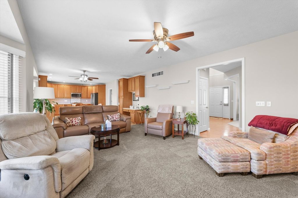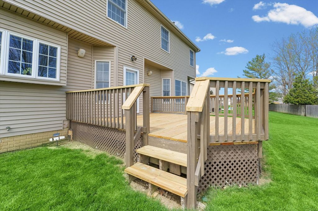 Beautifully maintained home offering an exceptional blend of space, function, and a well-designed floor plan in established Turnberry Ridge. The main level features a welcoming layout with a double staircase, spacious living areas, and a comfortable family room with built-in bookshelves surrounding the fireplace. The kitchen offers a center island, excellent workspace, and opens naturally to the informal dining and living spaces-ideal for everyday living and entertaining. A privately located main floor office provides a quiet, separate work-from-home space away from the main living areas. Upstairs, you'll find four bedrooms including a spacious primary suite featuring a large bath with jetted tub and an impressive walk-in closet. The finished basement expands the living space with a family room, bedroom, and full bath, along with a large unfinished storage area. Step outside to enjoy a well-manicured yard with mature landscaping and an updated deck-perfect for relaxing or entertaining. A 3-car garage adds excellent storage and flexibility. This home reflects consistent care and thoughtful updates throughout and is ready for its next chapter.