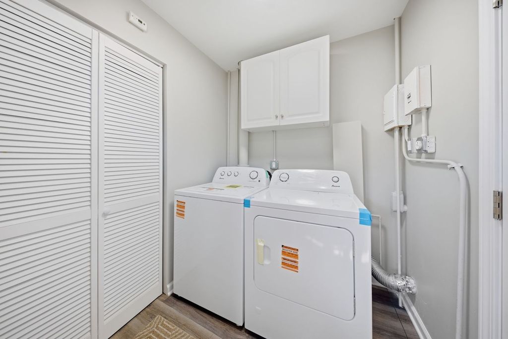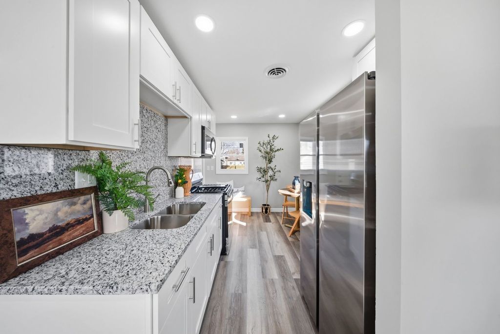 Beautifully rehabbed 2-bedroom, 1-bath ranch-style home offering modern updates and true move-in ready convenience. This home has been renovated from top to bottom, featuring a stunning kitchen with white shaker cabinets, granite countertops, stylish backsplash, and brand-new stainless steel appliances. Luxury vinyl flooring flows seamlessly throughout the entire home, creating a clean and contemporary feel. Both bedrooms offer comfortable space and natural light, while the fully updated bathroom showcases tasteful, modern finishes. The laundry area includes a brand-new washer and dryer for added convenience. Step outside to enjoy the fully fenced backyard-perfect for relaxing, entertaining, or outdoor activities. The finished 1.5-car garage provides excellent space for storage, hobbies, or workshop use. Major improvements include new plumbing, new electric box, new roof, new windows, sewer cleanup and numerous additional updates, offering peace of mind for years to come.