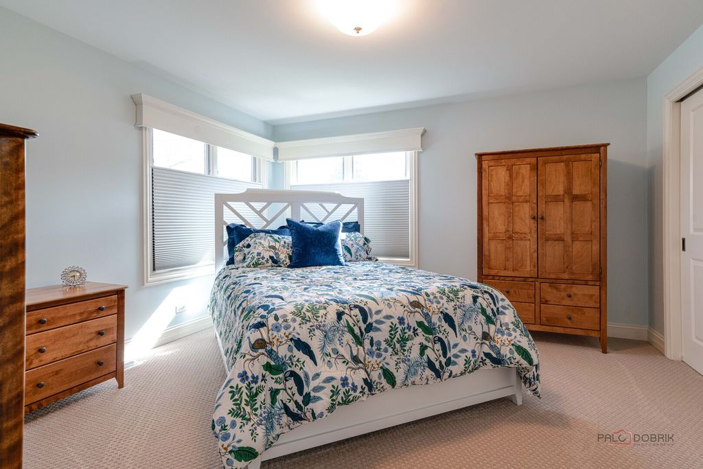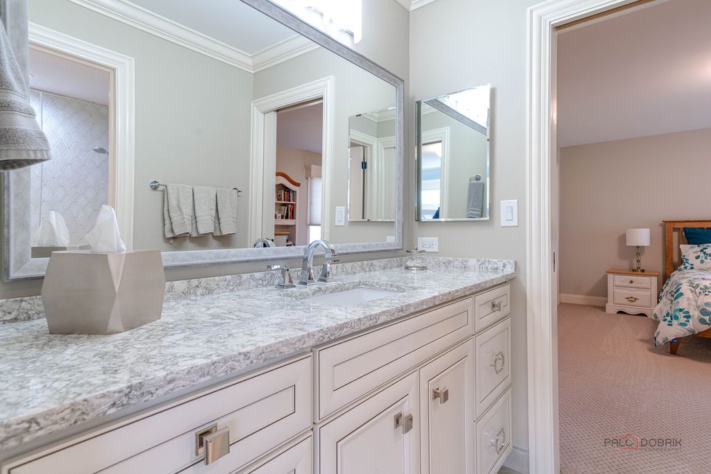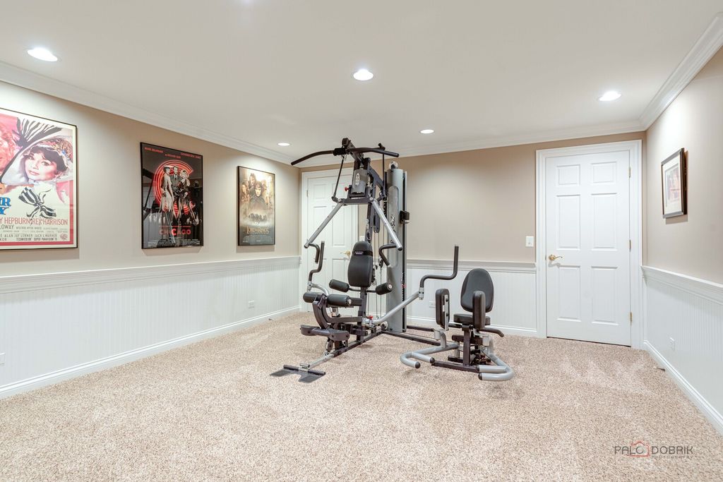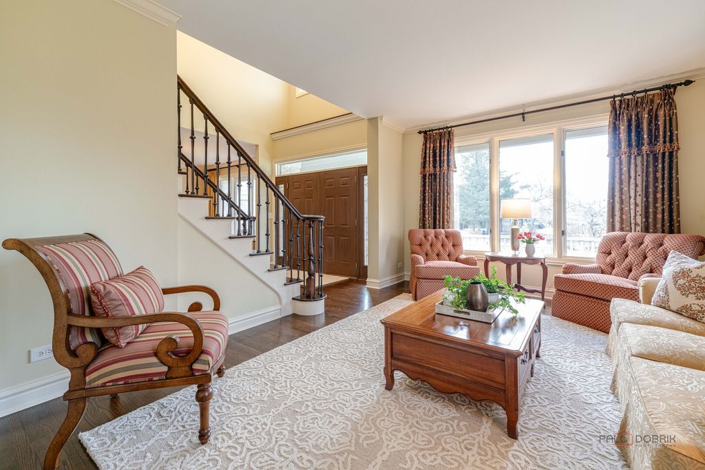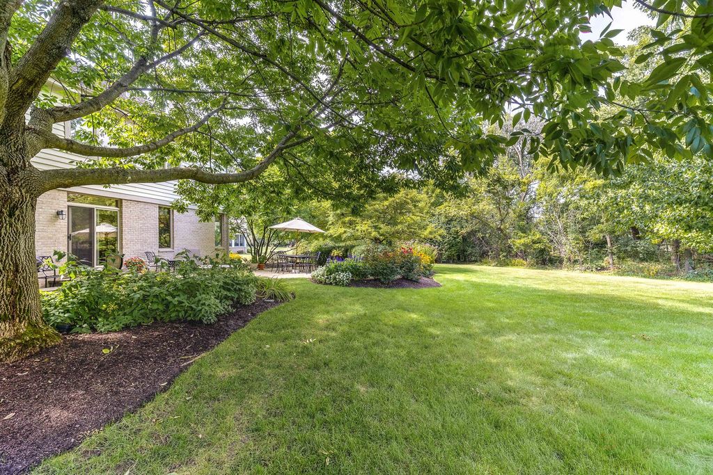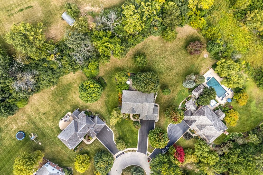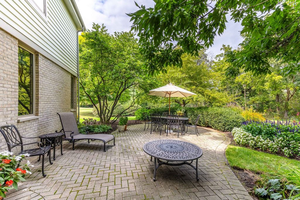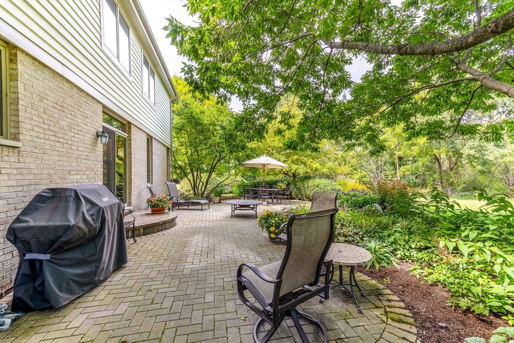 STUNNING CURB APPEAL, PRIVATE CUL-DE-SAC SETTING, AND A BEAUTIFUL TREE-LINED BACKYARD THAT OFFERS PEACEFUL, PRIVATE OUTDOOR LIVING! Situated on a sprawling .74-acre lot in sought-after Reigate Woods. From the moment you arrive, lush landscaping creates a warm and welcoming first impression. Out back, a tree-lined setting surrounds the brick paver patio, offering the perfect backdrop for summer gatherings, weekend cookouts, or peaceful evenings under the stars, an ideal space to spend your time outdoors. Inside, timeless finishes and thoughtful design shine throughout. Rich hardwood flooring, detailed millwork, custom built-ins, and designer touches create a home filled with character and style. A dramatic two-story foyer makes an unforgettable entrance, flanked by a formal living room and separate dining room designed for both intimate dinners and larger celebrations. The heart of the home is the beautifully appointed kitchen, crafted to impress. Featuring granite countertops, a tile backsplash, farmhouse sink, and Custom cherry cabinetry with ceiling-height upper cabinets, elegant crown molding, and under-cabinet lighting. High-end appliances include a SubZero refrigerator, Two Wolf ovens, a Wolf range, Miele dishwasher, Miele microwave, and a built-in Miele coffee maker. The expansive island with breakfast bar seating becomes the natural gathering place for everything from casual mornings to holiday hosting. A sun-filled eating area flows seamlessly into the family room, where a striking floor-to-ceiling stone fireplace creates a cozy yet dramatic focal point. The main level also offers a private office or den, a stylish first-floor half bath, and an oversized mudroom and laundry space with custom built-ins that enhance organization and everyday convenience. Upstairs, the expansive primary suite offers a relaxing retreat with soaring cathedral ceilings, a large walk-in closet with custom organizers, and a spa-inspired bath complete with a dual sink vanity and a separate shower. Four additional bedrooms and two updated Jack-and-Jill bathrooms provide comfort and functionality for family and guests alike. The finished basement expands your living space with a large rec and game area designed for relaxing and everyday enjoyment. Custom built-in shelving adds both character and function, while a kitchenette/wet bar, additional half bath, and a versatile bonus room ideal for a home gym or office enhance the layout. Storage, Storage, Storage! Three-car attached garage. 5 bedrooms, 3 full and 2 half baths. Notable updates include a new asphalt driveway in 2025, Gutters fitted with Leaf filters (2024), freshly painted interior, beautifully updated bathrooms, and HVAC systems updated in 2017. Prime location offers easy access to top-rated Oak Grove Elementary and Libertyville High School, Independence Grove, the Metra, major tollways, and the dining, shopping, and charm of downtown Libertyville. This one is sure to check every box!