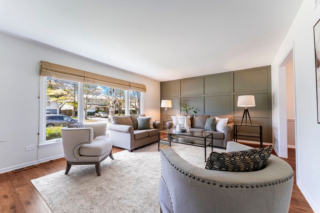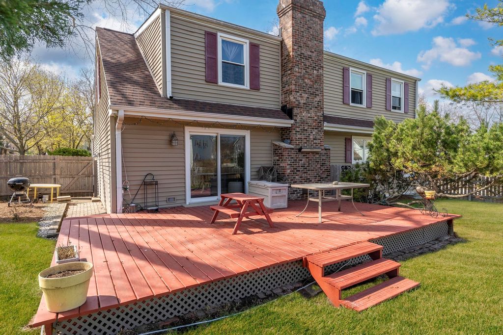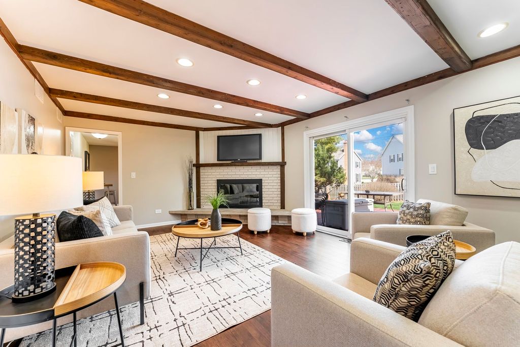 Move-in ready perfection! This 3-bedroom, 2.5-bath home in Barrington has been meticulously maintained, newly updated, and freshly painted throughout, offering a 1.5-story layout with a bright and flexible floor plan, generous living spaces, a whitewashed masonry brick fireplace, and stunning exposed beam ceilings. This may just be your Home Sweet Home. Situated on a desirable corner lot, step outside to a spacious, fenced backyard with a deck-perfect for relaxing or entertaining-surrounded by mature trees and offering plenty of room to enjoy. Downtown Barrington is just a 15-minute walk away, offering unique local dining and shops. Conveniently located approximately 30 minutes to O'Hare. Schedule your tour today.