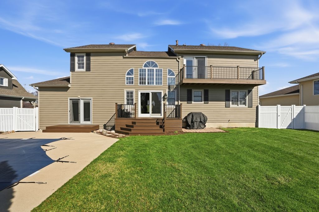 Beautifully maintained St. John gem offering generous living spaces and standout architectural details throughout. A true focal point of the home is the impressive two-story kitchen gathering room, filled with natural light, featuring soaring windows, double glass doors to the exterior, and a striking wood-planked vaulted ceiling that creates an unforgettable space for gatherings. This home offers both a living room and a family room, providing flexible living areas. The inviting family room features a gas fireplace, built-in bookshelves and cabinetry, and another set of glass double doors leading to the backyard. All bedrooms include California Closet systems and ceiling fans, while the Primary suite features its own balcony retreat. The Primary ensuite delivers a spa-inspired experience with a rain shower, body jets, handheld wand on separate controls, corner whirlpool tub with heater, double sinks, and an exhaust fan with light and heat. The kitchen is equipped with under-cabinet lighting, and includes all appliances (dishwasher, refrigerator, stove, microwave, and garbage disposal). The finished basement expands the living space and is currently set up as an in-home salon, complete with a 3/4 bathroom, kitchenette, and laundry room. Additional basement features include a large egress window, dual sump pump pits, water softener, and crawl space for storage. Outdoor living shines with a large concrete patio surrounding the 20x40 in-ground pool, which includes a diving board, slide, and stair jets. The fully fenced yard offers durable PVC fencing, sprinkler system, and storage shed. Additional exterior highlights include a 3-car-wide concrete driveway with shaved curb, newer LP siding and gutters, and a whole-house generator.