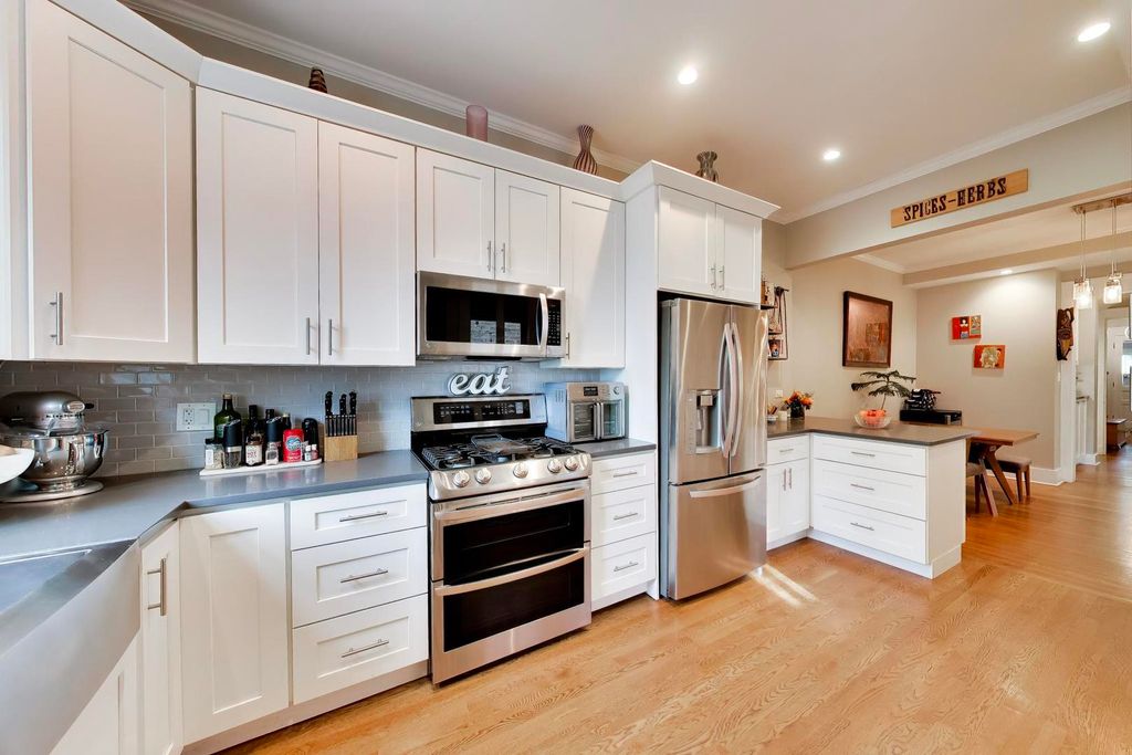 Timeless charm meets modern living in this beautifully maintained 1899 rowhouse, in the heart of Evanston. From the moment you step through the double-door entry, you're welcomed by soaring 9.5-foot ceilings, original hardwood floors, and stunning vintage details, including intricate trim and classic doorknobs. A mudroom area, at the entry, provides a space to hang coats and leave shoes. Large, updated Anderson windows throughout provide incredible natural light throughout the day. The oversized living room is perfect for relaxing or entertaining, anchored by a cozy gas fireplace. The thoughtfully updated kitchen, with quartz counter tops, white cabinets, tons of pantry space, a breakfast bar and stainless-steel appliances opens seamlessly to the dining area, creating an ideal space for everyday living and gatherings. A butler pantry off the dining room adds both character and functionality. Great flow from the kitchen to the deck and backyard makes indoor-outdoor entertaining easy. The backyard has a large paver patio, space for a garden, is fully fenced and has access to a private alley behind the home. An updated 1/2 bath conveniently finishes off the first floor. Beautiful hardwood stairs bring you upstairs where you'll find three bedrooms, plus one additional tandem bedroom. The spacious primary suite offers an additional flex area-ideal for a private in-home office or sitting area. The hall bath features a large soaking tub, skylight, heated floors, and classic black-and-white tile. Generous closet space throughout. The basement has been dug out, is already plumbed for a full bathroom, and has direct access to the backyard, providing incredible potential to expand your living space. Use this space for your storage needs and transform the rest into a family room, guest space, in-law suite or any unique space you can dream of. All of this and an unbeatable location-just steps from the Metra and El trains, the Main and Chicago Avenue shops and restaurants, parks, schools, and an easy walk to Lake Michigan. With easy access to Northwestern and downtown Chicago, this home truly offers the best of Evanston living.