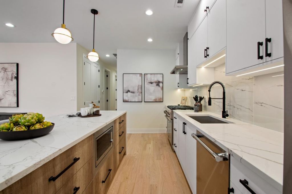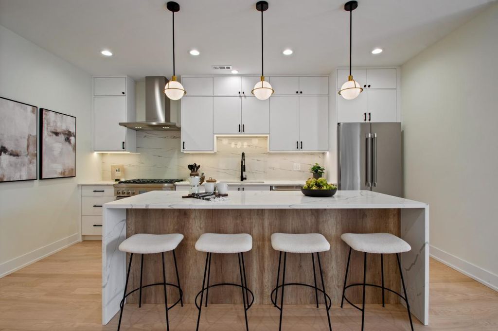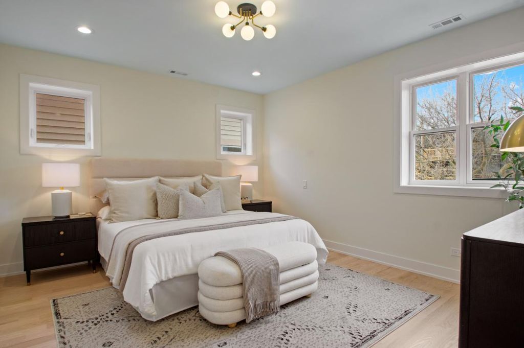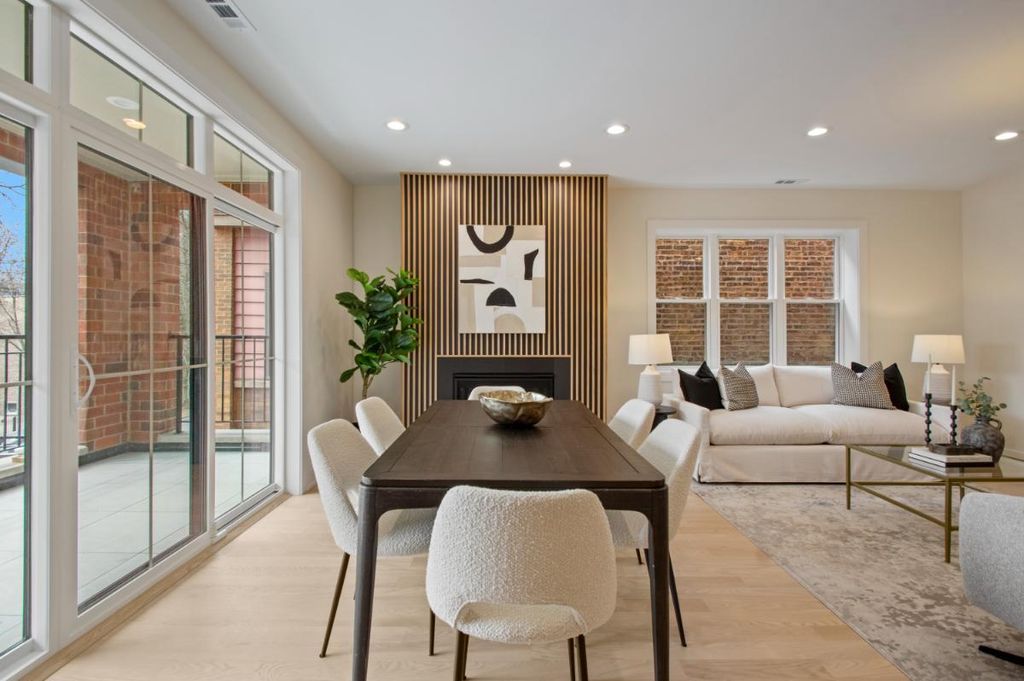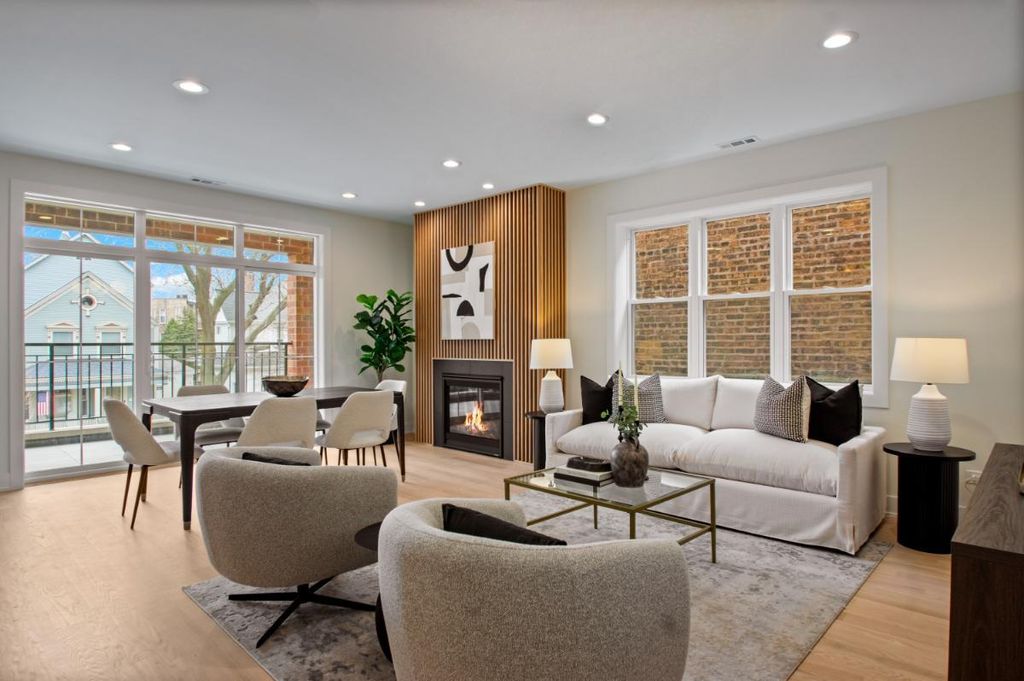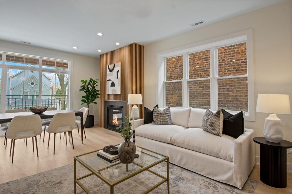 Spectacular extra-wide new construction in the heart of Andersonville. Set on a 35-foot-wide lot, this spectacular south-facing simplex offers a serene living experience on one of Andersonville's quietest streets while still being less than a three-minute walk from all of the shops, restaurants and vibrant energy of Clark & Foster. Not your cookie-cutter condo, as you enter this home you will be blown away by the width and the layout! Finally a condo with a generously sized kitchen, a generously sized living space and a true, defined dining area. Not to mention a south-facing deck finished with 24" x 24" porcelain tile overlooking charming, tree-lined Winona. Features of this home include: 4-inch American white Oak hardwood floors, 8-foot solid core two-panel inset doors, 9-foot ceilings and custom closets throughout. Kitchens include a full Thermador appliance package, 1.25-inch quartz counters with waterfall-edge island, custom cabinets with soft-close hinges and drawers. A gas, ventless fireplace with beautiful surround is the focal point of the family room. As you continue through the home, you'll find 3 nicely sized bedrooms, a hall bath with hexagonal marble stone flooring, marble tub and shower surround and floating vanity with 1.25-inch quartz countertop. The primary bedroom boasts a large walk-in closet, and primary bath features a floating vanity, double sinks, 12" x 24" stone floors, and an enormous walk-in shower with rain shower, hand-held, soap niche and bench. Not to be overlooked is a large, walk-in laundry room with stackable washer/dryer and plenty of room for storage. Garage parking included. Available for immediate delivery. Photos coming 2/19.