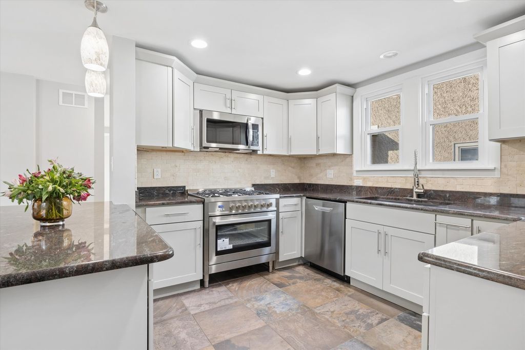 Offering 4 spacious bedrooms and 3.5 baths, beautifully updated in 2025 and set in an unbeatable location. This stunning home blends modern style with everyday functionality. A charming bay window and wood-burning fireplace create a warm, picturesque living room, while rich hardwood floors flow seamlessly throughout. The updated kitchen features all-new appliances, granite countertops, and abundant cabinetry, opening effortlessly into the dining room. Upstairs, the primary suite is a true private retreat, complete with a generous dressing room, double vanity, and European shower. Two additional bedrooms share a well-appointed full bath, while the fourth bedroom occupies the entire top floor/attic, offering exceptional space and versatility. The finished basement is complete with a second kitchen and a full bath-perfect for guests or extended living. Outside your backyard oasis awaits, perfect for relaxing or entertaining, featuring a deck, hot tub, and a charming greenhouse. Parking is effortless with a 2-car garage plus an additional carport accommodating two more vehicles. Notable updates include a new roof, newly renovated primary bath, and second-floor laundry. Located in highly sought-after District 97/200 schools, this home truly has it all.