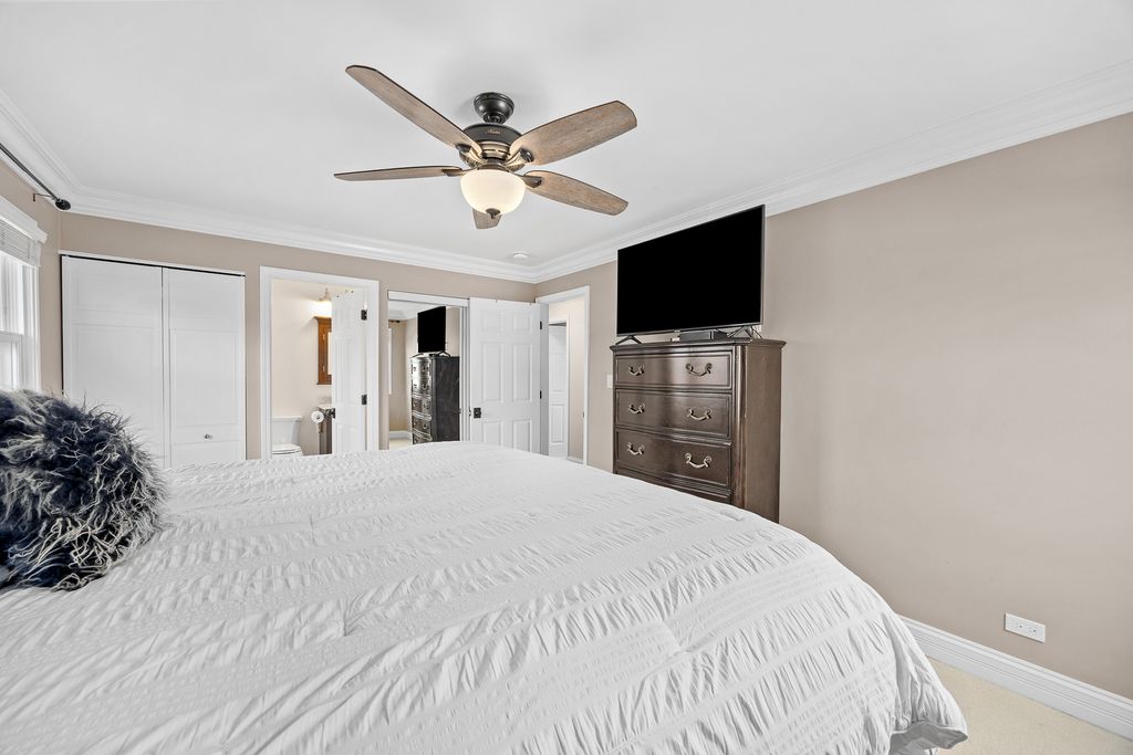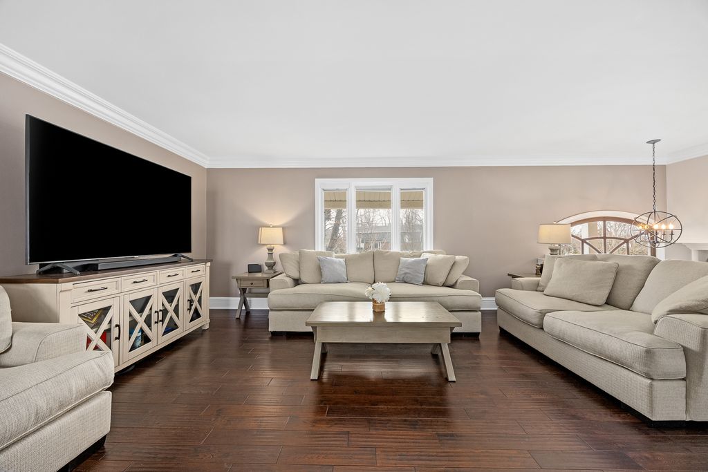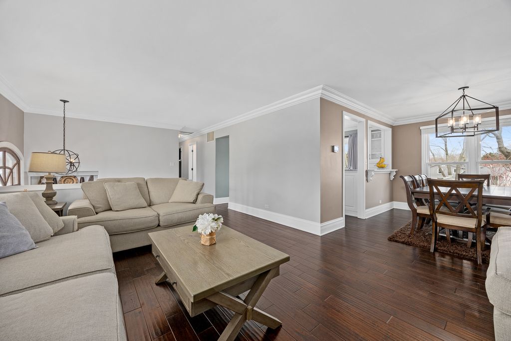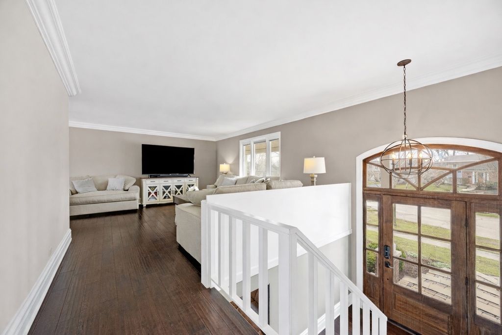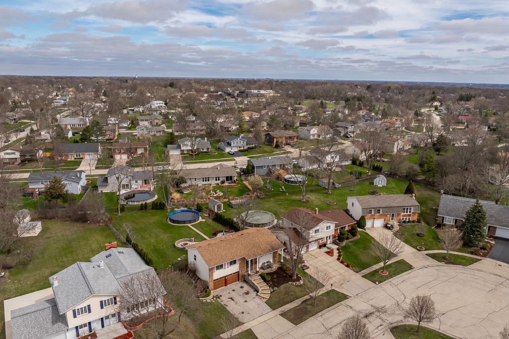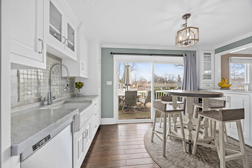 Step into style and comfort in this extensively upgraded raised ranch with plenty of recent improvements. This 4-bedroom home (3 on the main level, 1 on the lower level) with 2 full baths features a bright, open layout designed for both everyday living and entertaining. The heart of the home is the beautifully redesigned kitchen, showcasing high-end appliances, sleek marble countertops, a farmhouse sink, wine fridge, and a large sliding glass door that brings in abundant natural light and provides easy access to the outdoor living space. Throughout the main level, you'll find hardwood flooring, crown molding, updated windows, and fresh, modern finishes. The main bathroom has been tastefully updated with a dual vanity and elegant marble details. The lower level expands your living space with a spacious family room, full bath and laundry area. Radiant heated travertine floors add warmth and luxury to the space. Outdoors, the backyard is truly a private retreat. Enjoy summer days in the pool, unwind by the fire pit, or host gatherings in the fully equipped outdoor kitchen featuring a gas grill, refrigerator, and built-in storage. Thoughtful landscaping, ambient lighting, and multiple seating areas create a relaxing and inviting atmosphere. The home's curb appeal shines with a custom-built front door, beautiful stone walkway, expanded front porch, and upgraded exterior lighting. Major updates include newer HVAC and a tankless water heater. Ideally located near shopping, dining, major highways, and within walking distance to parks, a dog park, playground, and elementary school. All of this within the highly desirable Fremd High School district makes this home a standout opportunity.