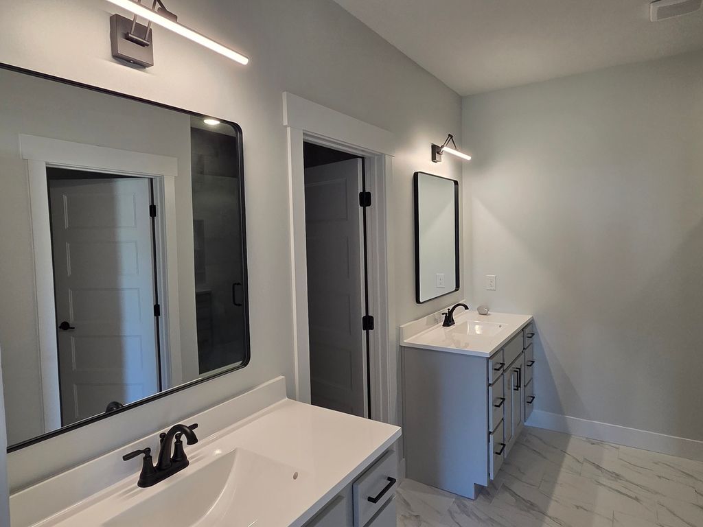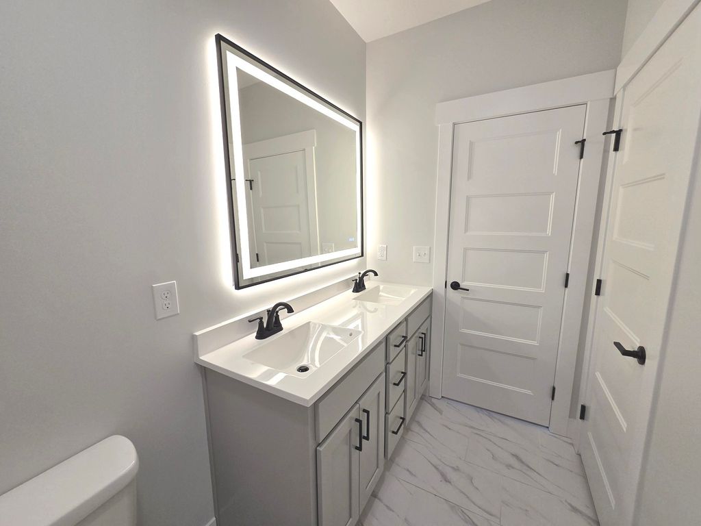 Welcome to this stunning new construction ranch home located just moments from the beautiful The Den at Fox Creek Golf Course-offering the perfect blend of luxury, comfort, and modern efficiency. Designed with today's lifestyle in mind, this open-concept floor plan features a spacious family room anchored by a Heatilator gas fireplace with automatic, temperature-controlled blower. The kitchen is a true showstopper, complete with a jumbo gathering island, soft-close painted shaker cabinetry, and sleek finishes throughout. The main level offers generously sized bedrooms, including a private primary suite, along with a convenient drop zone and main-floor laundry. The fully finished basement continues the same high-quality finishes as the main level-providing incredible additional living space for entertaining, relaxing, or hosting guests. Built with efficiency and durability in mind, this home features 2x6 exterior construction with R-19 insulation, energy-efficient LED puck lighting throughout, and a high-efficiency furnace and water heater. The oversized, fully insulated 3-car garage is loaded with upgrades including a 220V EV outlet, gas line for future heater, hot and cold water spigot, and additional media setup. Enjoy outdoor living on the covered patio with a gas stub ready for grilling or future outdoor kitchen. A great opportunity to own a high-end home in one of the area's most desirable locations.