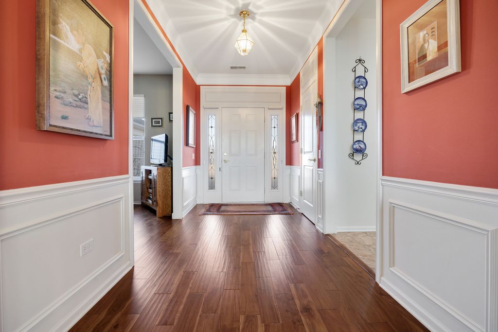 Spacious Grant model with an Extended Garage on a Premium Lot backing to trees and small creek!! Numerous updates/upgrades include; Acacia Hardwood Floors throughout most of the home ~ Ceramic in Kitchen and Bathrooms (NO Carpet) ~ White Paneled Doors & Trim ~ Surround Sound System ~ Silhouette Window Treatments ~ Huge Kitchen with Oversized Island, 42" Cabinets with Crown Molding, Cambria Counters, Ceramic Backsplash, Built-In Oven and Custom 250+ Bottle Wine Refrigerator ~ Primary Bedroom with Bay Windows and Double Walk-In Closets ~ Private Bath with Dual Raised Vanity, Garden Tub & Separate Shower ~ Second Bedroom with Walk-In Closets ~ Good Size Den/Office ~ Laundry Room with Built-in Counter/Desk & Wall Cabinet/Shelving, Wash Tub and New Washer/Dryer ~ Oversized Paver Brick Patio ~ Pull Down Stairs to Attic Storage in Extended Garage ~ Roof (2013) ~ All this and more in Del Webb Sun City's Active Adult Community