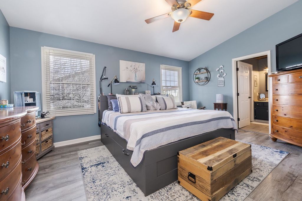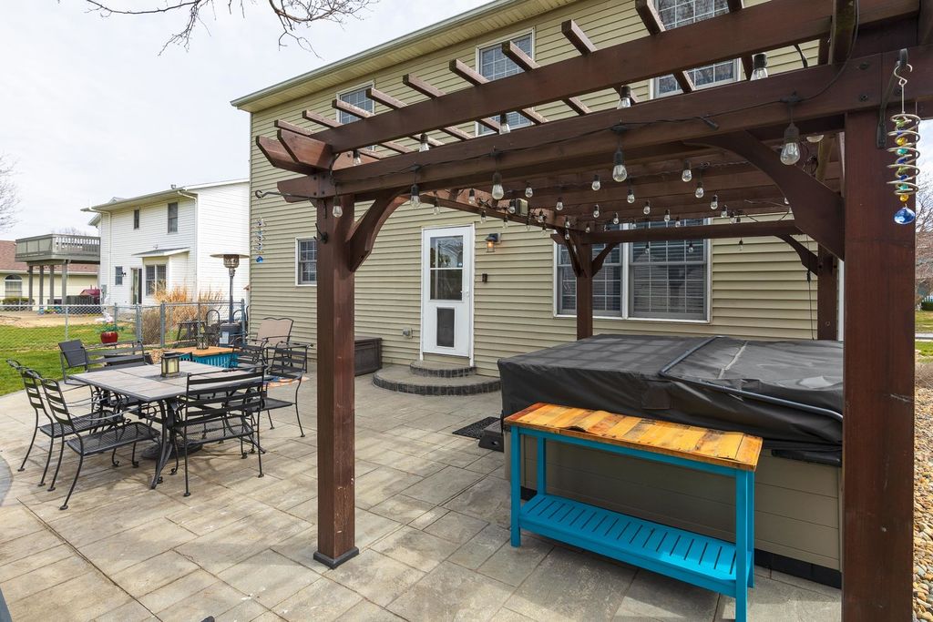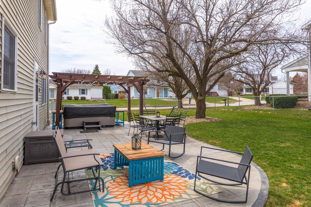 Beautifully updated and meticulously maintained home in a desirable Bloomington neighborhood, Unit 5 Schools, close to parks, constitution trail, shopping and businesses! Upgraded flooring flows throughout, featuring hardwood in the foyer and formal dining room, newer carpet in the living and family rooms, and tile in the kitchen. The inviting family room showcases custom built-in bookcases surrounding a cozy gas fireplace. The stunning kitchen upgraded with quartz countertops, stylish backsplash, and newer appliances. Upstairs features an upgraded staircase, updated flooring, modern light fixtures and fans, and remodeled bathrooms. The spacious primary suite boasts a vaulted ceiling, beautifully and unique updated bathroom, and walk-in closet, along with three additional bedrooms and a full bath, all with newer blinds. The totally remodeled finished basement provides excellent additional living and entertaining space. Additional highlights and updates include new roof in 2015; new HVAC in 2018; newer water heater; all new shutters in March 2026; an insulated garage door with WiFi-enabled opener; 3 doors with smart lock and more to see in person. Step outside to a beautifully landscaped, fully fenced backyard complete with a large patio, hot tub (2020), gazebo, and storage shed-perfect for outdoor enjoyment! Do not miss out and be the proud next owner of this beautiful house!