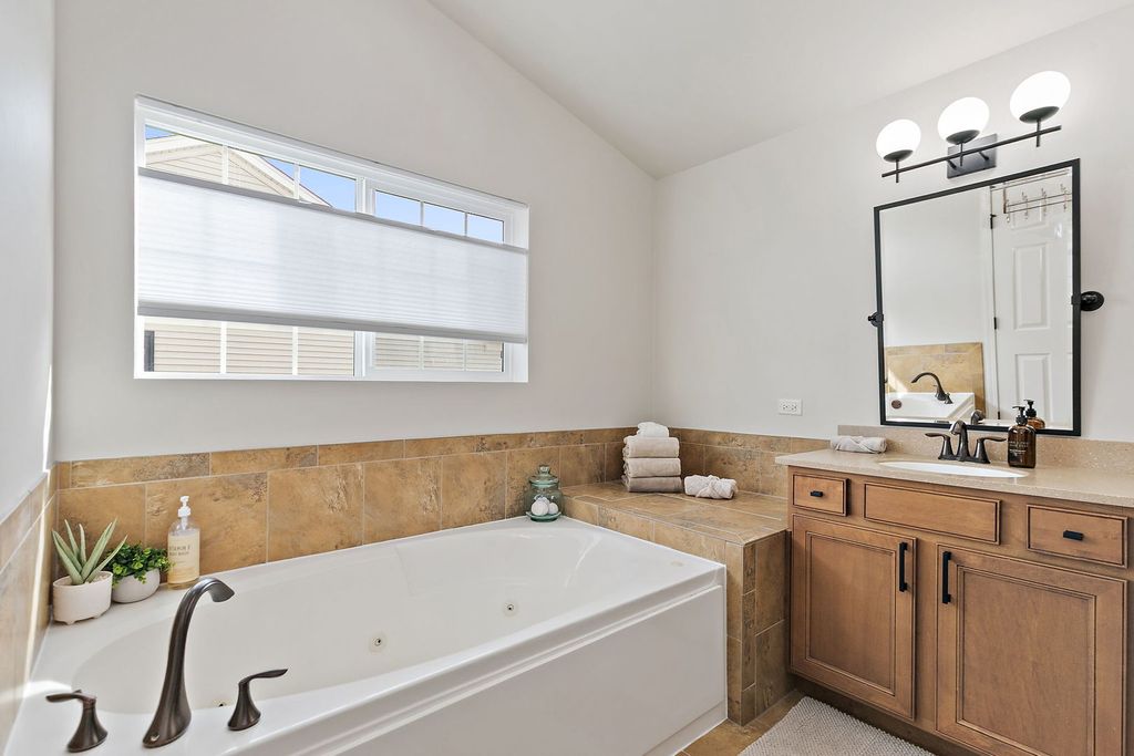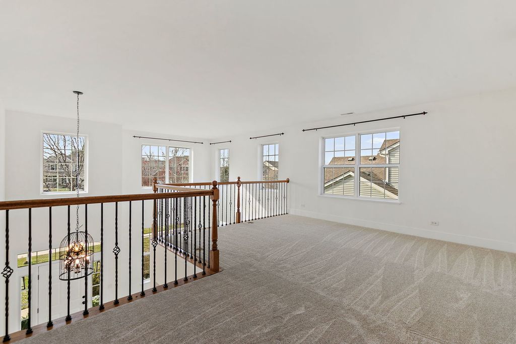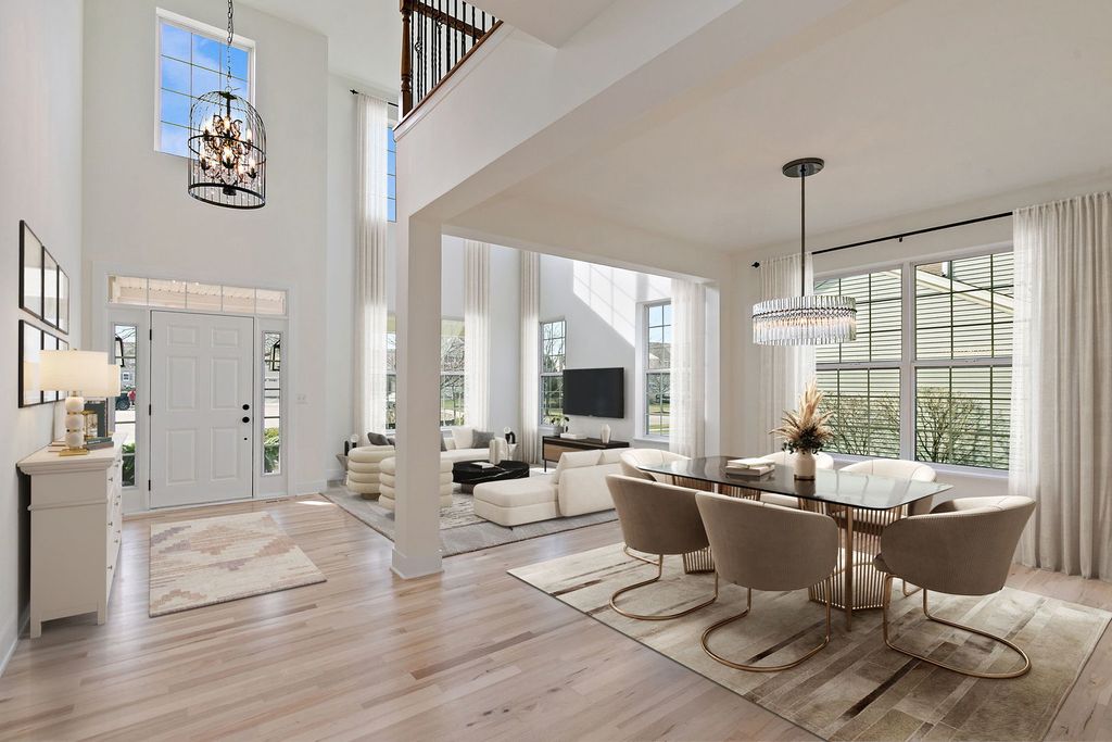Welcome home to 9612 Baumgartner Street, ideally located in the highly sought-after Talamore community! This stunning Magnolia model showcases a beautiful all-brick front elevation, welcoming front porch, newer exterior lighting, and brand-new garage doors-offering timeless curb appeal from the moment you arrive. Step inside and immediately appreciate the thoughtfully updated interior, where freshly refinished birch hardwood flooring, new custom wood trim, baseboards, and upgraded wood registers create a cohesive and elevated feel throughout. The dramatic two-story foyer opens to a formal living and dining space, highlighted by soaring ceilings, abundant natural light, and a stylish updated light fixture-perfect for both everyday living and entertaining. A versatile first-floor office offers flexibility to suit your lifestyle-currently outfitted with a salon sink, it can easily be transformed into a pet grooming station, coffee bar, or private workspace. A tucked-away powder room adds convenience and privacy. The heart of the home is the beautifully updated kitchen, designed to impress and function seamlessly. Featuring a striking herringbone subway tile backsplash, re-faced island with seating for five, new Pottery Barn lighting, and updated fixtures including sink, faucet, microwave, and hardware, every detail has been thoughtfully curated. Stainless steel appliances, including a double oven, cooktop, and newer Bosch dishwasher, complete the space. A reimagined planning desk now serves as a charming coffee station or butler's pantry with floating shelves and a designer backsplash. Open to the kitchen, the inviting family room offers brand-new plush carpeting, surround sound, and a cozy fireplace-creating the perfect space to relax and unwind. Recessed lighting throughout the home enhances both function and ambiance. A practical mudroom with closet, along with a separate laundry room, adds everyday convenience to this well-designed layout. Upstairs, you'll find four generously sized bedrooms plus a versatile loft, all featuring brand-new carpeting and padding. The luxurious primary suite is a true retreat, complete with a custom wood accent wall, updated lighting, and a beautifully refreshed ensuite bath with new mirrors, fixtures, and a sleek glass shower surround. Dual walk-in closets with custom built-ins-including dedicated shoe storage-provide exceptional organization. The full English basement offers impressive ceiling height, built-in storage, and roughed-in plumbing-ready for your future finishing ideas. Additional updates include fresh paint throughout and all new door hardware. The oversized three-car garage features a built-in workbench and ample storage. Step outside to enjoy the mature landscaping and private deck overlooking a peaceful natural setting with no rear neighbors-an ideal backdrop for relaxing or entertaining. Enjoy all that Talamore has to offer, including a clubhouse, pool, fitness center, tennis and pickleball courts, basketball courts, fishing pond, scenic walking paths, and more. The community also features baseball and soccer fields, playgrounds, and picnic areas-truly something for everyone. This exceptional home offers the perfect blend of style, comfort, and community-move right in and start enjoying the Talamore lifestyle!