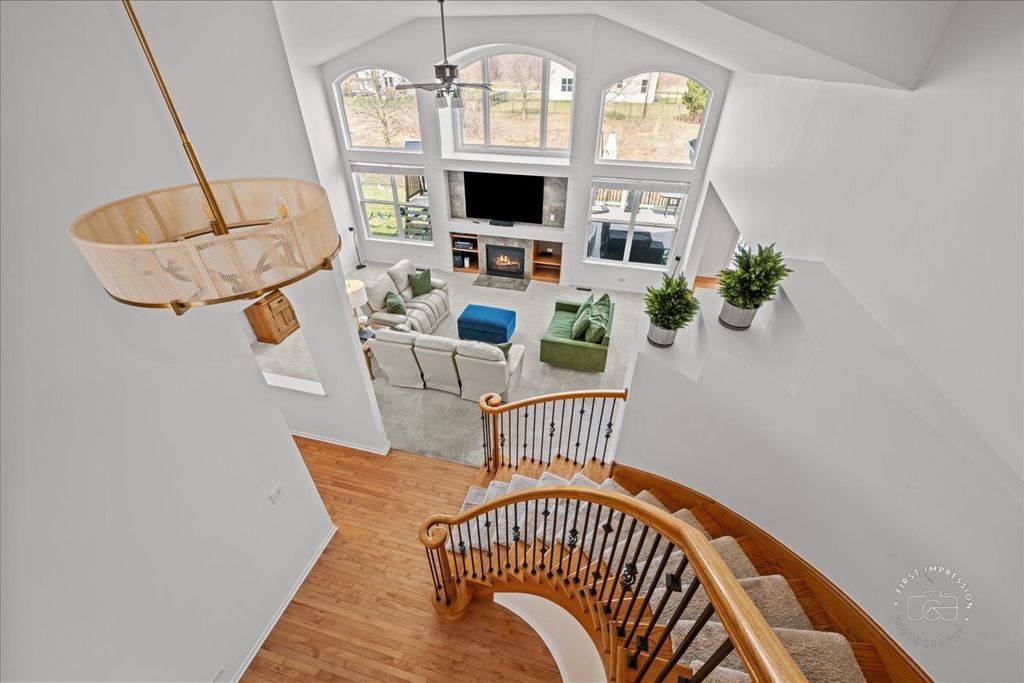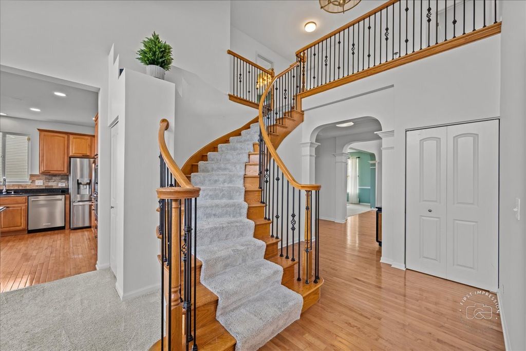 This Beautiful, spacious, and thoughtfully designed home offers over 4,100 square feet of living space, where soaring ceilings, oversized windows, and hardwood flooring create an open and inviting feel from the moment you enter. The layout is ideal for both everyday living and entertaining, with a large living room and dining room that flow seamlessly into the heart of the home. The kitchen was thoughtfully designed for function and for easy gathering, featuring stainless steel appliances, 42" maple cabinetry, granite countertops, a large island with breakfast bar, a butler's pantry, and a walk-in pantry-offering exceptional storage and workspace. The adjacent family room provides a comfortable place to relax, complete with a fireplace for added warmth and character. And those gorgeous windows bathe the whole area in natural light. A versatile main-level bonus room offers endless possibilities, whether used as a playroom, fitness area, classroom, craft room, or easily convert it to a first-floor bedroom. Use it in the way that works best for you! The main level also includes a private office, powder room, and a well-equipped laundry room with cabinetry and folding space. Upstairs, the primary suite is set behind French doors and features a spacious en suite bath with soaking tub, separate shower, water closet, linen storage, and a dreamy professionally designed closet system that ensures your wardrobe is displayed with boutique-level precision! Three additional very generous bedrooms and a full hall bath complete the second floor, providing ample space for family or guests. The heated 3 car garage includes an epoxy floor and hot and cold water lines! Step outside to a fully fenced backyard designed for both relaxation and entertaining. The large 24' x 19' composite deck (new in 2023) is the perfect place to enjoy the glimmering morning sunlight. The professionally landscaped yard is wonderfully private with thoughtfully placed hydrangeas and mature shrubs! Located just minutes from the Virgil Gilman Trail, parks, shopping, and dining. With easy access to I-88 and the Metra train, this home is a Commuter's Dream! Students may attend Freeman Elementary and Washington Middle School. Recent updates include freshly painted family room, kitchen, and bonus room (2026), updated light fixtures (2026), dishwasher (2025), upstairs central air (2024), furnace with humidifier (2024), composite deck (2023), water heater (2023), and sump pump (2023). Welcome Home!