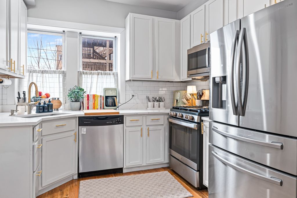 Sun-filled and stylish, this updated 2 bed, 2 bath home sits in a prime location with incredible natural light pouring through large bay windows. The spacious layout features hardwood floors throughout and generously sized bedrooms, including a primary suite with a beautifully renovated 2023 spa-like bath - featuring a full body-spray shower, creating a relaxing retreat within the home. The kitchen was also fully renovated in 2023 and showcases granite surfaces, modern finishes, and brand-new appliances. A new dishwasher installed in February 2026 adds to the list of thoughtful upgrades. Everyday living is made easy with a stackable washer and dryer. Plenty of street parking available. The location is central, walkable and steps from amazing attractions like the 606 trail and surrounding top restaurants. This one is not to be missed!