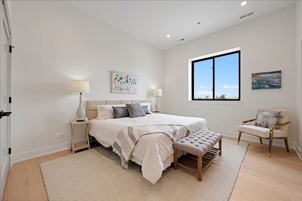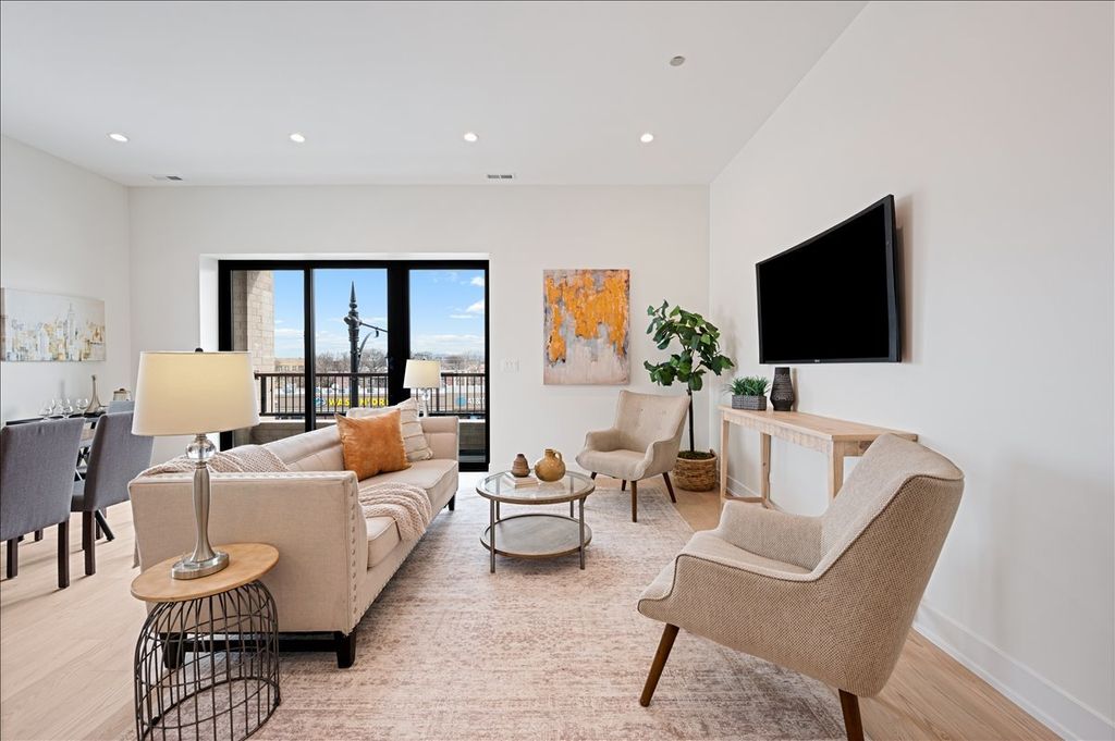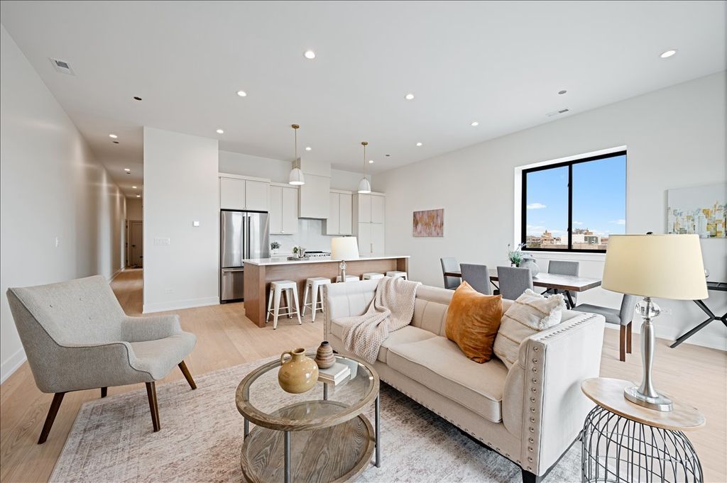 Stunning new construction 3 bedroom, 2 bath residence in a boutique 9-unit elevator building located in Lincoln Square. This exceptional home offers a thoughtfully designed open floor plan anchored by a show-stopping custom kitchen featuring slim shaker cabinetry, a 9' oak island, decorative hood cover, LED accent lighting, brass fixtures and stainless steel KitchenAid appliances. The expansive living and dining area boasts 10' ceilings and oversized windows that flood the space with natural light. The primary suite serves as a serene retreat, highlighted by radiant heated floors in the spa-inspired bathroom, a large walk-in shower, and double sink oak vanity. Two additional bedrooms and a beautifully appointed full bath complete the bedroom wing. Designed to extend living outdoors, the home features 14' x 9' private garage deck off the living area, ideal for entertaining. One heated garage parking spot included. Photos of different layout with same finishes. Deliveries beginning in May 2026.