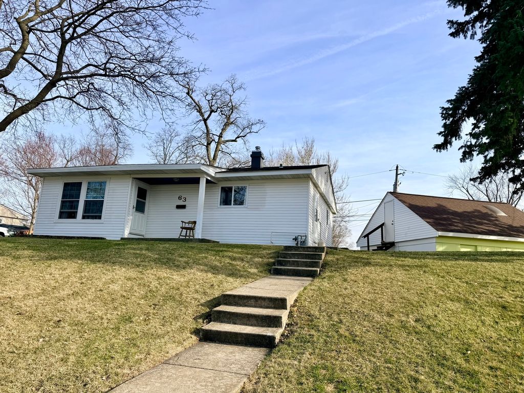 Charming 3 Bedroom, 1 Bath Ranch Home situated on a lovely hilltop setting with a front porch. The Home has been updated with new Stainless Steel appliances in the kitchen and features a spacious 2 car garage with a Loft. Newer Furnace, Air-conditioner and Hot Water Tank (6/2023),Washer, Dryer and Micro.(11/2025), Oven and Refridgerator (2024), Living Room Window (2023) Roof (2015)