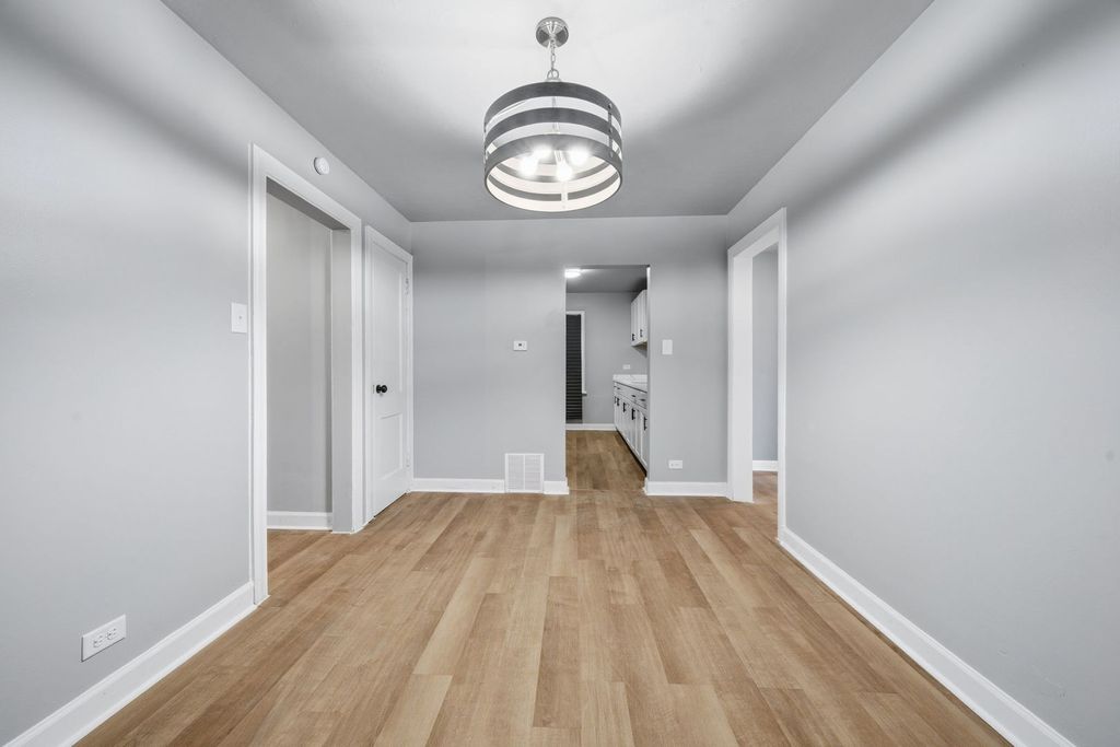 Welcome home to this well-maintained 3-bedroom, 1-bath ranch offering comfortable single-level living with room to grow. Featuring an easy-to-maintain exterior and a new roof, this home combines practical updates with everyday functionality. Step inside to discover a freshly updated interior showcasing new paint, new baseboards, new wood laminate flooring throughout, recessed lighting, and numerous mechanical improvements including new electrical, updated plumbing, new smoke detectors, and a new sump pump for added peace of mind. The bright kitchen features white cabinetry, quartz countertops, and stainless-steel appliances, seamlessly connecting to a separate dining area ideal for everyday meals or entertaining. The unfinished basement includes a laundry area and large utility sink, offering excellent storage and endless potential to create additional living space such as a game room, home office, or recreation area. Outside, enjoy a level yard with patio space perfect for relaxing or hosting gatherings, along with a detached 2-car garage providing ample parking and storage. Property is being sold as-is, presenting a great opportunity for homeowners or investors alike. Schedule your showing today!