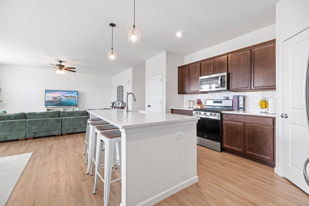 A premier house on a premier lot in the subdivision with a not-so premier price tag! Come check out this spacious, true 4 bedroom home with an open concept layout on the main level. Only 2 years old with all the smart capabilities and bonus smart fingerprint door locks. The primary bedroom has plenty of space for a sitting area and a delightful ensuite bath that will carry you away! Upgraded massive mirror with lights and a defogging feature. You'll love long, hot soaks in the tub, a separate tiled shower with glass door and a secured closet space. Enjoy a formal office space in the flex room at the front of the house that could also be a den or receiving room. There's another office space off the kitchen to meet the demands of modern day living. Great for the work from home crowd, kids study area or make it your home's command center. The kitchen and dining area are great for entertaining with easy access to the backyard and park. Custom vinyl blinds throughout the house will stay. Attached 2 car garage. Walking trails, shopping center across the street from the community. You'll love it here!