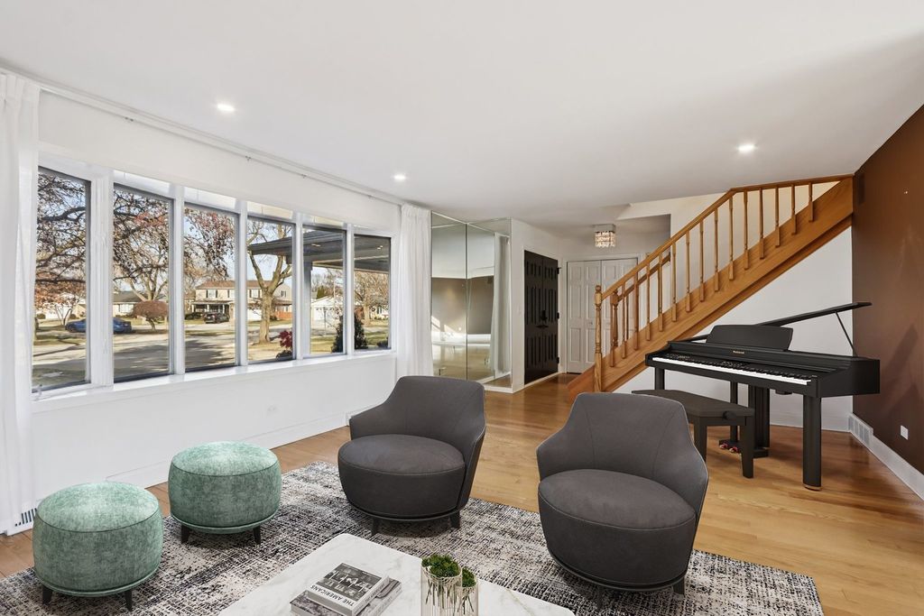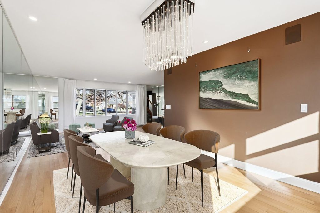 Welcome to this exceptional, fully renovated home built for entertaining in every season. Showcasing stylish contemporary finishes throughout, this distinctive residence features three separate kitchens-ideal for hosting gatherings year-round. Spend summers relaxing beside the in-ground pool, expansive patio, and pool house complete with its own kitchenette. Both the main home and pool house were freshly painted in 2024 and enhanced with remodeled baths, kitchen updates, upgraded lighting, and elegant millwork completed the same year. A new winter pool cover and pool sweep were added in 2025 for effortless upkeep and added peace of mind. Rich hardwood flooring extends throughout the home (excluding the basement), while Pella windows provide beauty and energy efficiency. Offering five generously sized bedrooms, three full baths, and two half baths-including two bedrooms with renovated en-suite baths-the floor plan delivers comfort and versatility. A main-level bedroom creates the perfect in-law arrangement or convenient single-level living option. Upstairs, the luxurious primary suite serves as a private escape, featuring a smart mirror, spacious walk-in shower with full body spray heads, and upscale finishes. Two inviting fireplaces bring warmth and character to the living spaces. The finished basement offers an expansive recreation area with a full wet bar, ideal for entertaining. Outdoors, the fully fenced backyard is professionally landscaped with mature greenery and vibrant perennials, creating a private retreat. Additional highlights include furnaces and A/C replaced in 2012, plus a hardwired security system with concealed window sensors and exterior cameras. Located within the highly acclaimed Arlington Heights School District, backing to John Hersey High School, and near the proposed future Chicago Bears development, this home combines luxury, flexibility, and prime convenience-just minutes to shopping, dining, and easy access to downtown Chicago. A truly rare opportunity to own a versatile home designed for comfortable living and memorable entertaining.
