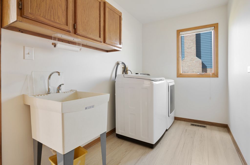 Excellent 4 bedroom, 2.5 bath single family home in Heritage Knolls! Features include formal living room with (5) panel bay window and elevated ceiling! Huge kitchen with beamed cathedral ceiling, stainless steel appliances, new quartz countertops (2026), new LVP flooring (2026), mobile center island, white cabinets, pantry and dual skylights! Spacious family room with high quality carpet (2024) and brick fireplace with gas log system (2024)! Primary bedroom includes cathedral ceiling, palladium window, closet system and primary bath suite! (3) Additional upper level bedrooms and full upper level hallway bath! Main level powder room! Formal dining room! Main level laundry room with new LVP flooring (2026) and service door! Full basement with elevated ceiling! Great usable yard with patio! Attached 2.5 car garage with new garage door opener (2025) and EV charging unit (2025)! Other recent improvements include: New siding and fascia (2024), carpet (2024), multiple painted rooms (2026), new kitchen sink (2026), garbage disposal (2025), blacktop (2024) and exterior fenced storage area (2025)! Anderson windows (except family room). School district 157C & Lincoln-Way East High School!