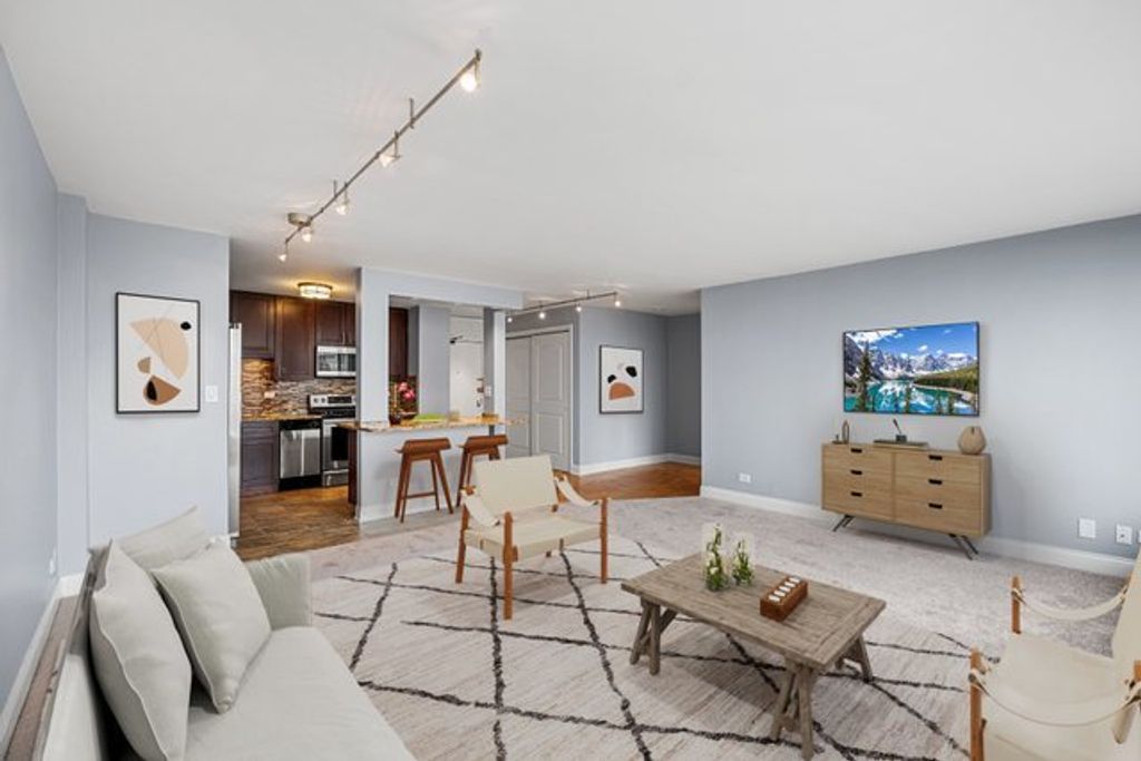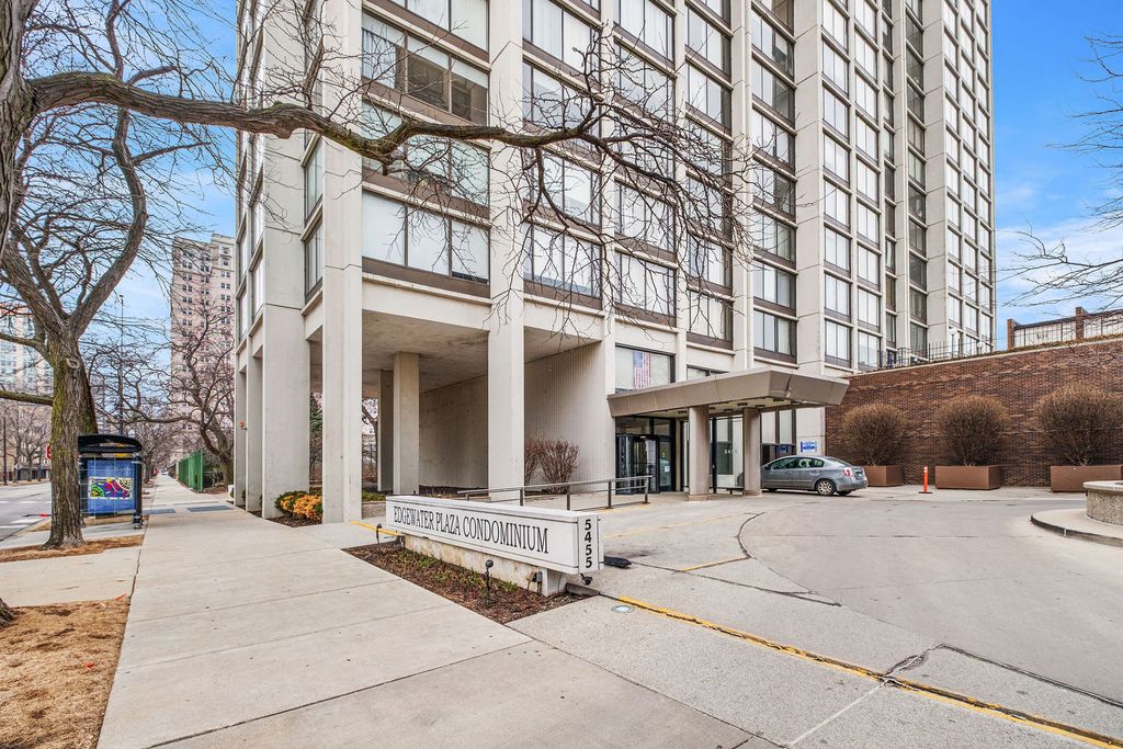 Now is your chance to own a piece of the Chicago skyline! This home offers generous room sizes with ample closet space. The updated kitchen features granite countertops, dark shaker cabinets, tile backsplash, stainless steel appliance package, and a peninsula island. The floorplan flows effortlessly into a /living dining area overlooking the park and lakefront, perfect for entertaining. The expansive living room features floor-to-ceiling windows. Relax in your large primary suite, complete with custom closet organizers, and enjoy the backdrop of panoramic park, beach and lakefront views. The bathroom features, earth-tone tiling, shower/tub combo and plenty of storage. The building offers a full-amenity lifestyle, including a 24-hour doorman, on-site management, a sundeck with cabanas, a pool and grill area, a library, dog run, two party rooms, cleaners/valet, bike storage, and on-site laundry facilities. Located in a highly walkable neighborhood, the building is steps away from the Berwyn and Bryn Mawr Red Line stops, Andersonville, dining, nightlife, parks, and grocery stores including Jewel, Mariano's, and Whole Foods. Enjoy easy access to lakefront beaches and jogging trails, with express buses to downtown located just outside the building.