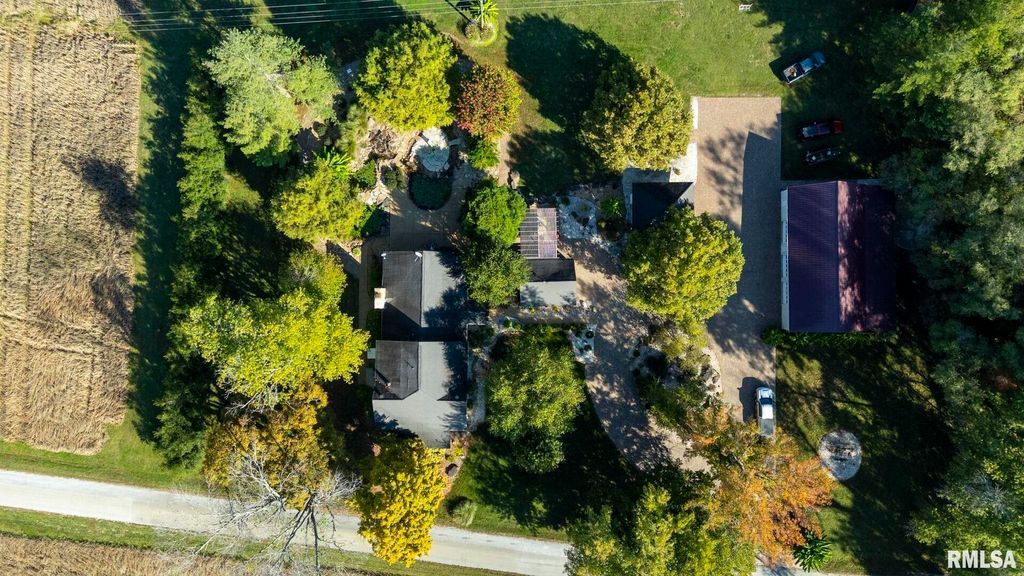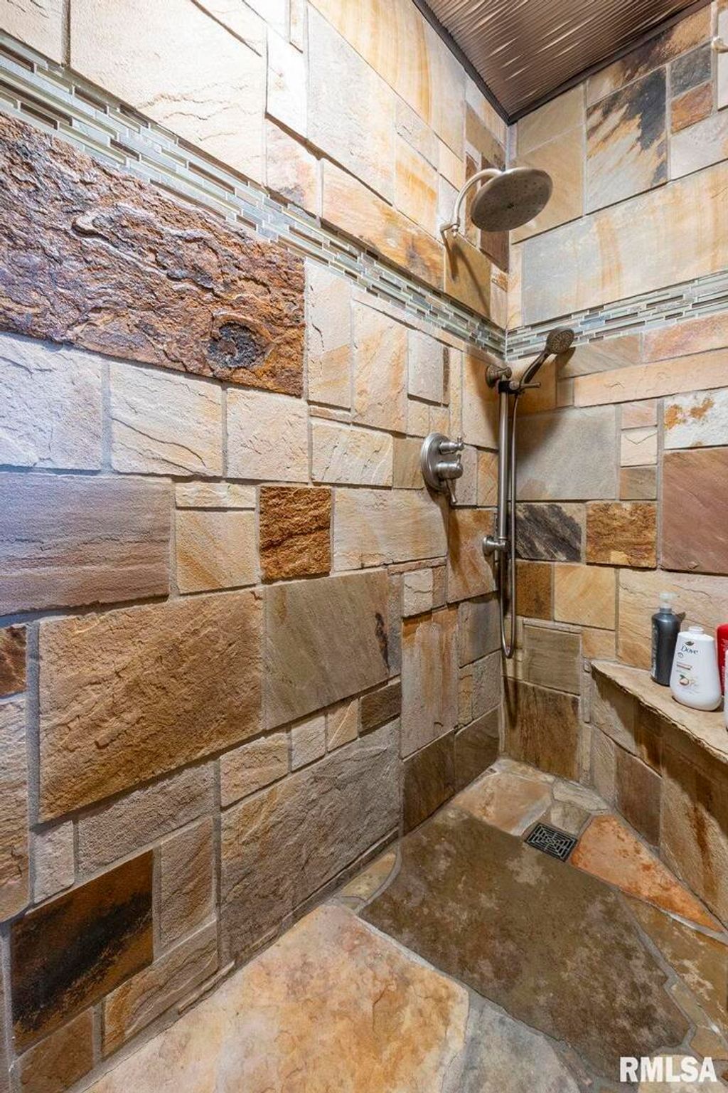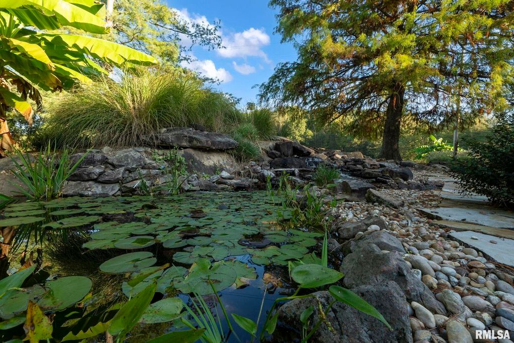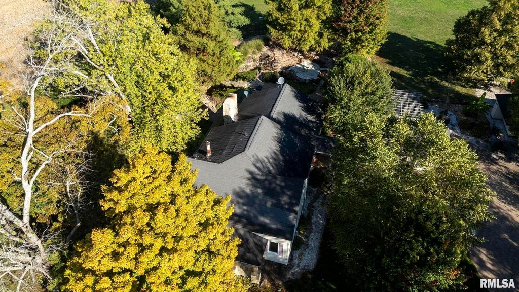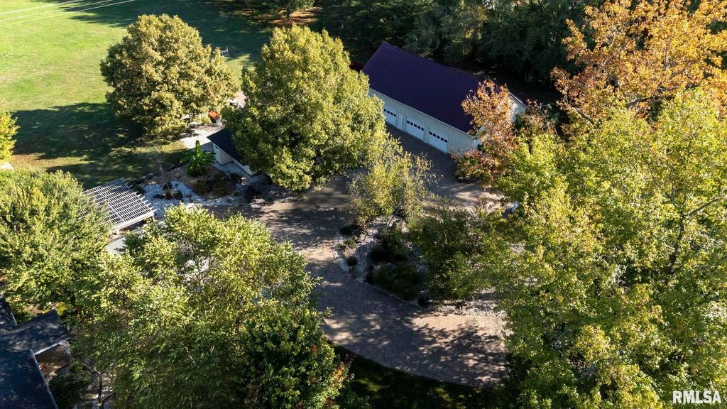 Your inner peace starts when you head down a picturesque country road, canopied by mature trees that lead you to your 21.5 +/- acre property waiting to erase the stresses of the day! This custom home and property were hand-crafted by the current owner, and no corners were cut. Natural landscaping stone touches every corner of this spacious home and picturesque patio. Words are not able to do justice to the tranquil and lush outdoor patio showcasing koi ponds connected by streams, various waterfalls, and water features. A gazebo area that features a custom-made hexagon stone table with ample seating, along with a custom serving table. Steps away from the house, you will find 3 outbuildings for all your needs. Building 1 boasts a 30'x60' with a concrete floor, insulated and heated. Complete with 3 automatic garage doors, 2 walk-in doors, and a 13'x60' lean-to off the back side. Building 2 is 22'x18' with a concrete floor, a garage door, and walk doors. Building 3 is 18'x16', perfect for a wood shop or mancave/she-shed. A concrete floor covered with easy walk foam floor, electric, heat, and A/C. The driveway boasts custom-designed pavers that add a beautiful touch as you drive into the property. The remaining property has a small ag field that is currently being used for farming, a great wooded area that borders some of the Shawnee Nation Forest, and a fully stocked pond. The pond is surrounded by cypress trees and has its own dock, a 5-hp commercial aerator, and is fully stocked! This pond is full of large Catfish, Bluegill, and Bass! Whether you enjoy hunting, fishing, or just enjoying the peaceful outdoors, this property has it all. The home boasts approximately 3,800 square feet of custom high-end touches that are tastefully rustic and extremely well done. As you enter the great room, you will fall in love with the natural stone fireplace that encompasses the entire wall and includes a custom barn wood firebox. The floors are gorgeous natural stone that span the entirety of this main floor. This open concept room includes a large kitchen area and is the perfect marriage of high-end touches. The granite countertops are highlighted on the very large entertaining island that seats 6, while the cooking island allows you to interact with guests while preparing meals. Off the side of the island area is a spacious dining area with a beautiful view through the picture windows looking out to the patio area. A step up from the great room takes you into a perfect private dining area surrounded by barn wood wainscoting. Onward takes you to another sitting area and a gorgeous fireplace! The theme of natural stone and rustic feel continues throughout this level. The main floor is complete with a laundry room, office, full bath off the great room, and a master suite with another full bath. The master suite is as rustic and cozy as it gets. With reclaimed barn wood, rustic barn tin, and natural stone work in the master bath, this is a must-see master area! Upstairs features 4 more bedrooms and a full bath! Perfect for hosting guests and family. This whole level of space provides plenty of privacy and space for your family or guests. This property truly has so much to offer and is a must-see to appreciate the true beauty the current owner has put into it.