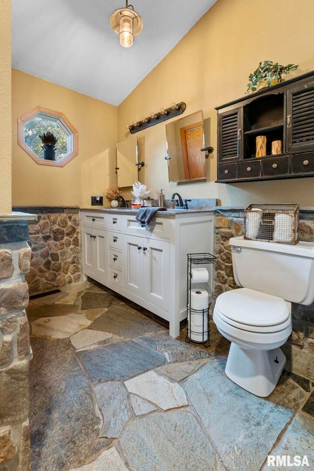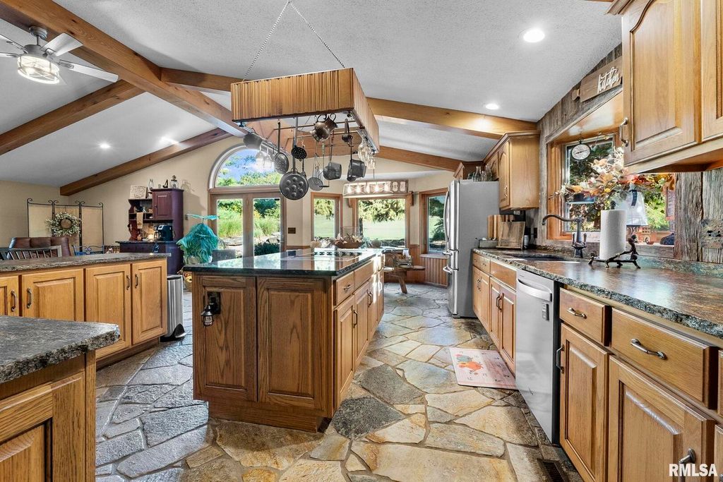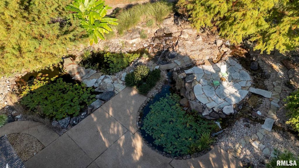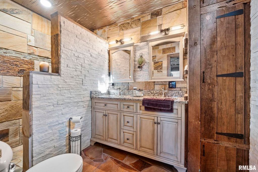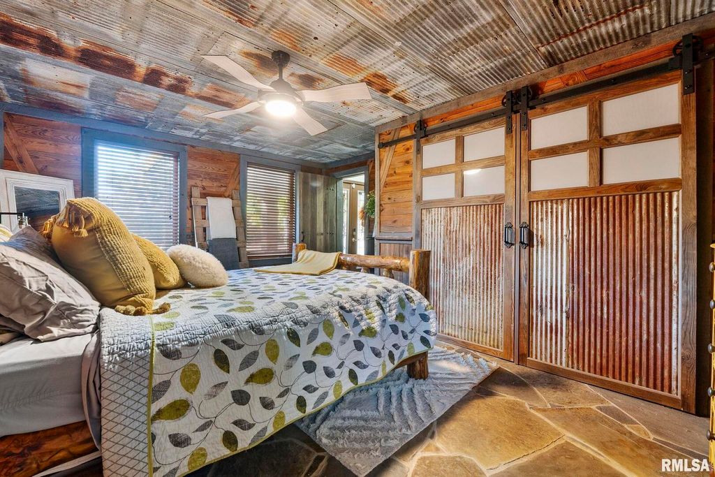 Your inner peace starts when you head down a picturesque country road, canopied by mature trees that lead you to your 21.5 +/- acre property waiting to erase the stresses of the day! This custom home and property were hand-crafted by the current owner, and no corners were cut. Natural landscaping stone touches every corner of this spacious home and picturesque patio. Words are not able to do justice to the tranquil and lush outdoor patio showcasing koi ponds connected by streams, various waterfalls, and water features. A gazebo area that features a custom-made hexagon stone table with ample seating, along with a custom serving table. Steps away from the house, you will find 3 outbuildings for all your needs. Building 1 boasts a 30'x60' with a concrete floor, insulated and heated. Complete with 3 automatic garage doors, 2 walk-in doors, and a 13'x60' lean-to off the back side. Building 2 is 22'x18' with a concrete floor, a garage door, and walk doors. Building 3 is 18'x16', perfect for a wood shop or mancave/she-shed. A concrete floor covered with easy walk foam floor, electric, heat, and A/C. The driveway boasts custom-designed pavers that add a beautiful touch as you drive into the property. The remaining property has a small ag field that is currently being used for farming, a great wooded area that borders some of the Shawnee Nation Forest, and a fully stocked pond. The pond is surrounded by cypress trees and has its own dock, a 5-hp commercial aerator, and is fully stocked! This pond is full of large Catfish, Bluegill, and Bass! Whether you enjoy hunting, fishing, or just enjoying the peaceful outdoors, this property has it all. The home boasts approximately 3,800 square feet of custom high-end touches that are tastefully rustic and extremely well done. As you enter the great room, you will fall in love with the natural stone fireplace that encompasses the entire wall and includes a custom barn wood firebox. The floors are gorgeous natural stone that span the entirety of this main floor. This open concept room includes a large kitchen area and is the perfect marriage of high-end touches. The granite countertops are highlighted on the very large entertaining island that seats 6, while the cooking island allows you to interact with guests while preparing meals. Off the side of the island area is a spacious dining area with a beautiful view through the picture windows looking out to the patio area. A step up from the great room takes you into a perfect private dining area surrounded by barn wood wainscoting. Onward takes you to another sitting area and a gorgeous fireplace! The theme of natural stone and rustic feel continues throughout this level. The main floor is complete with a laundry room, office, full bath off the great room, and a master suite with another full bath. The master suite is as rustic and cozy as it gets. With reclaimed barn wood, rustic barn tin, and natural stone work in the master bath, this is a must-see master area! Upstairs features 4 more bedrooms and a full bath! Perfect for hosting guests and family. This whole level of space provides plenty of privacy and space for your family or guests. This property truly has so much to offer and is a must-see to appreciate the true beauty the current owner has put into it.
