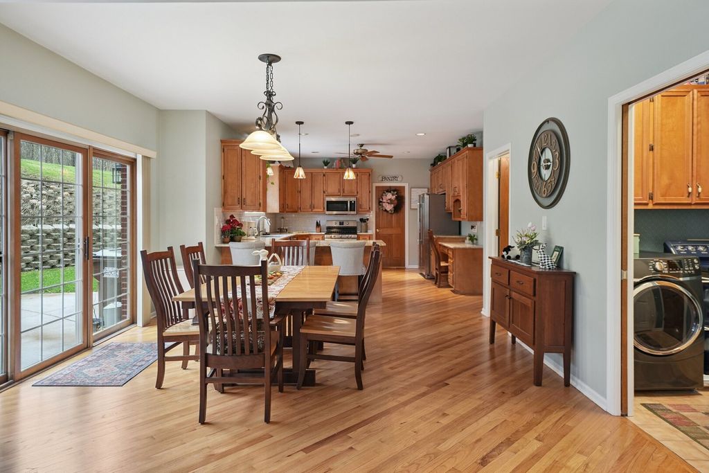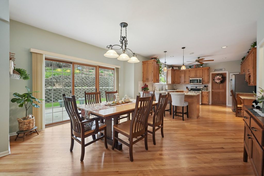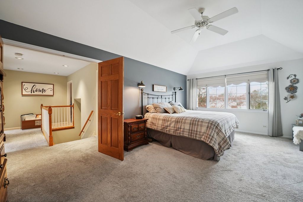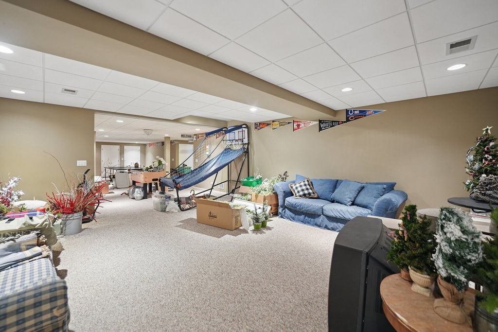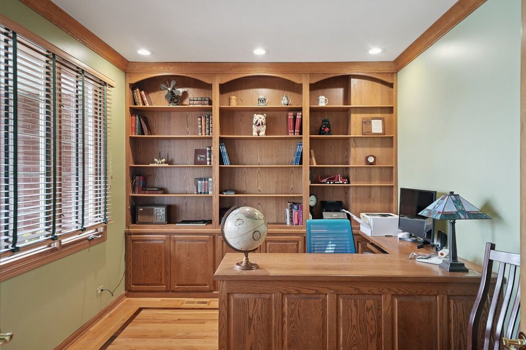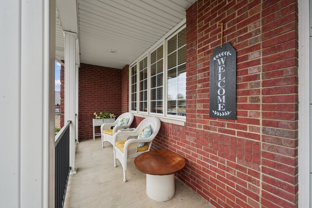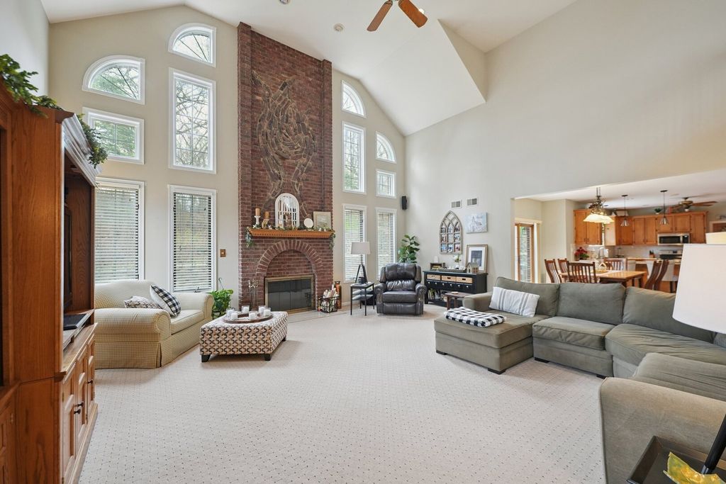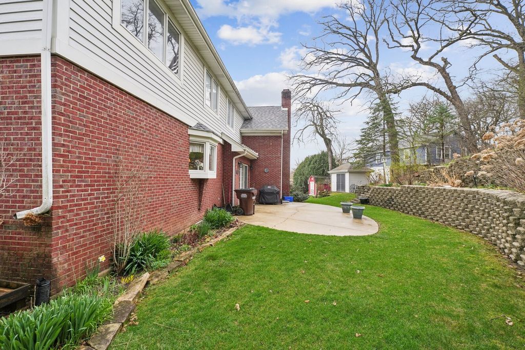 Step up to a home that instantly feels welcoming, where timeless brick curb appeal and a graceful front porch invite you to slow down and stay awhile. As you walk through the front door, you are greeted by a sense of space and warmth. To one side, a beautiful living room with a bow window fills the room with natural light, creating the perfect setting for quiet mornings or gathering with guests. Just beyond, a dedicated office with custom-built-in bookshelves and a desk offers a comfortable place to work, read, or simply enjoy a moment of calm. As we move further in, the home opens up in a way that truly feels special. The soaring two-story family room becomes the heart of it all, anchored by a stunning brick fireplace with decorative accents that draw your eye upward. This is where cozy evenings, holidays, and everyday moments come together effortlessly. The kitchen is designed for both function and connection, with a spacious eating area and an impressive walk-in pantry that keeps everything organized and within reach. Whether you are hosting a gathering or enjoying a quiet dinner at home, this space supports it all with ease. A convenient half bath and main-level laundry room add to the thoughtful layout. Upstairs, the home continues to impress. Four generously sized bedrooms provide comfort and flexibility, including a spacious primary suite that feels like a private retreat. With its own ensuite bathroom, walk-in closet, and a unique connection to a lofted reading area overlooking the family room below, this space offers both privacy and charm. The additional bedrooms are served by a large full bathroom, making everyday living easy and comfortable. The finished basement expands the home even further, offering a large recreation area perfect for movie nights, game days, or gatherings. A full bathroom and an oversized storage area ensure that everything has its place. Outside, the setting feels just as inviting, with mature trees, a manicured lawn, a beautiful paved back patio, a custom 12'x8' shed on concrete pad, and a welcoming front walkway that leads you home each day. This is more than just a house. It is a place where every space has a purpose, and every corner invites you to create lasting memories. Refrigerator, Stove,. Microwave - 2019; Dishwasher-2014; Furnace - 2019; Air Conditioner - 2020; Water Heater - 2015; Washer - 2012; Dryer - 2020; Roof - 2021