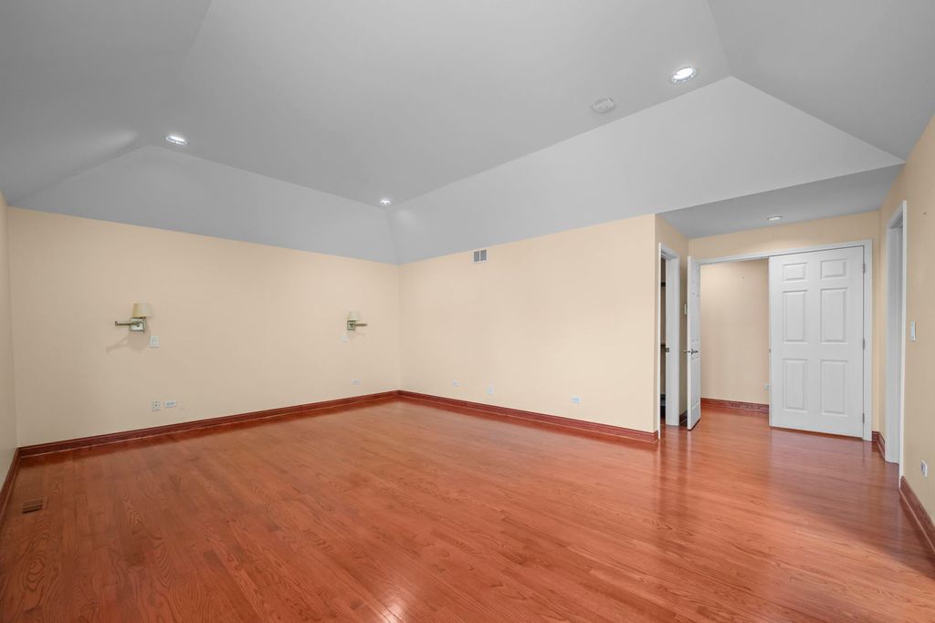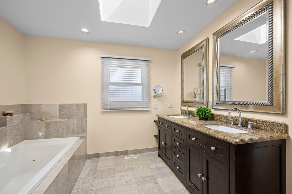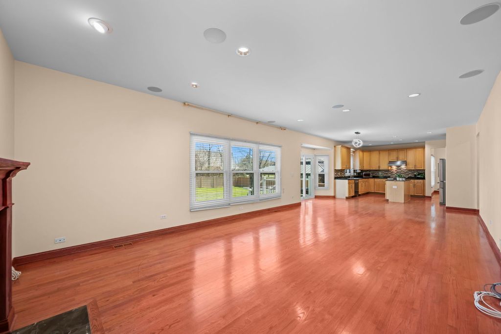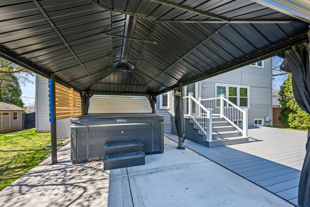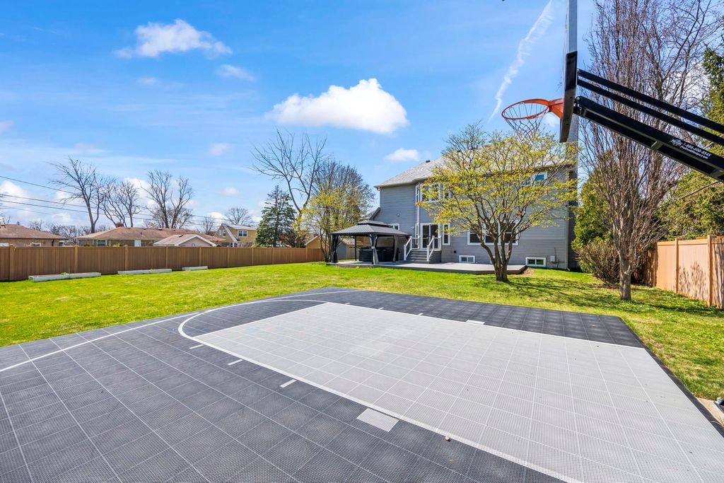 Welcome to this stunning 5BR, 3.1 bath, 3,025 sq ft home that truly has it all! Sitting on a hill overlooking the neighborhood, you'll call almost 0.4 acres your own. Hardwood floors throughout and 9 ft ceilings and vaulted ceilings set the tone for the quality finishes found at every turn. The kitchen will satisfy the fussiest chef, boasting solid maple 42" cabinetry, granite countertops, stylish tile backsplash, center island, pantry closet and stainless steel appliances including a French door refrigerator. Entertain in the Great Room with a gas log fireplace that catches everyone's attention and pre-wired ceiling speakers for your surround system home theater. The luxurious primary suite features a tray ceiling, his & hers California-closet style walk-in closets, whirlpool tub, dual sink vanity, and a spa shower with dual spray heads. Convenient first-floor bedroom perfect for extended family, guests or a home office. The finished basement with 3rd full bath and luxury vinyl plank flooring added in 2022 is ideal for a home theater, game room, or gym. Car lovers rejoice - the garage offers a 12' ceiling, car lift, workshop, tandem 3rd parking space, epoxy flooring, gas heater, sub-panel, and EV charger pre-wiring. Relax, grill or entertain on the no maintenance deck or unwind in the hot tub under the pergola. Your own 1/2 basketball court awaits in the backyard too! Fully fenced with a shed for extra storage. Newer furnace (2022), new double-pane windows (2025), and roof replaced in 2023 round out this incredible package. Walking distance to parks, schools, and close to Milwaukee Ave. restaurant row and shopping. Schedule a showing before someone else calls it home!