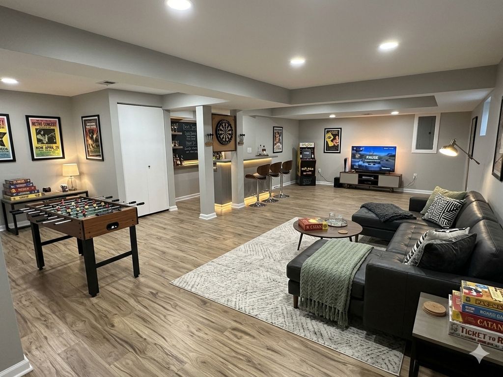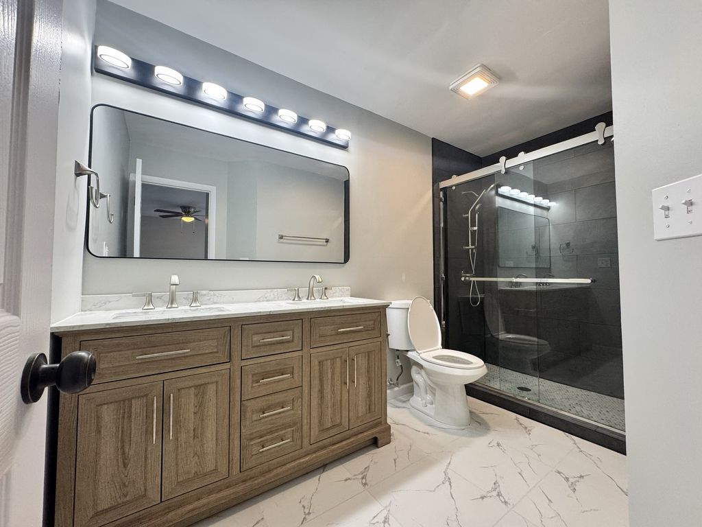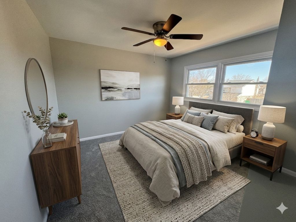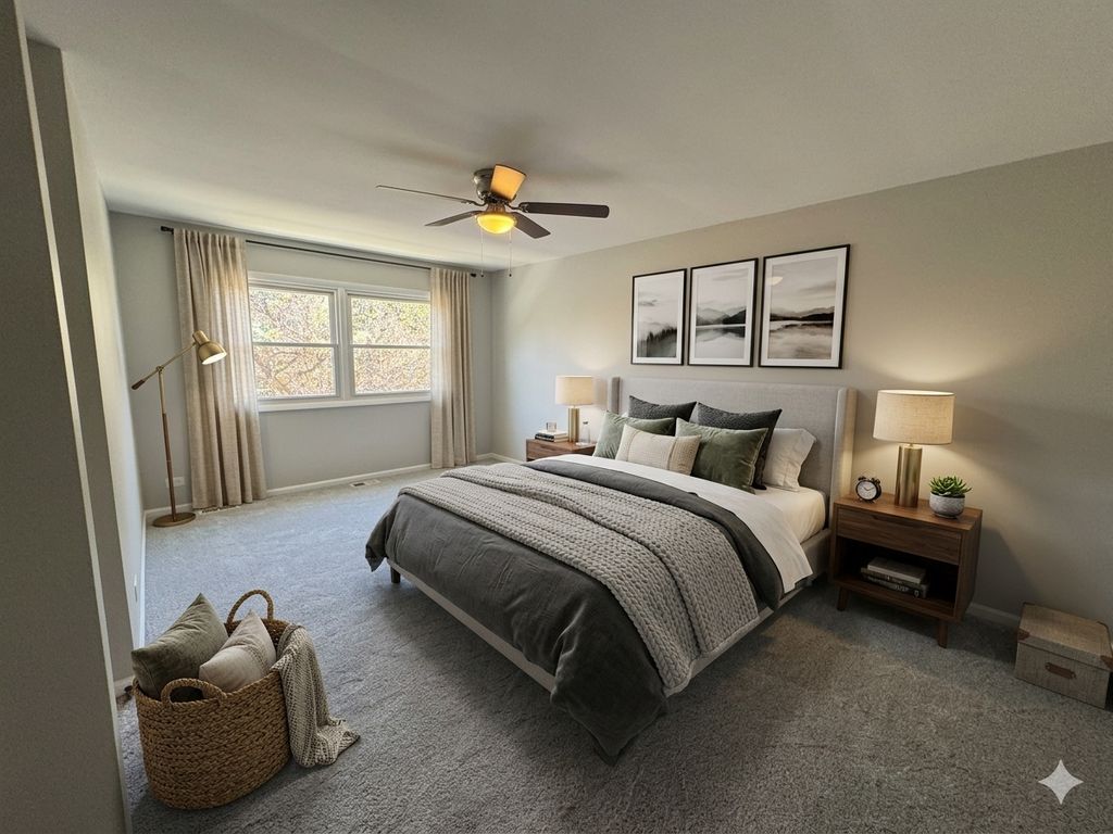 READY TO MOVE IN!! Complete house brought to a new life. This beautifully updated home offers over 3,000 square feet of inviting living space, including a fully finished basement with a layout that feels both spacious and comfortable. Mix of ceramic and Mohawk vinyl floors flow throughout the main level, complemented by decorative molding that adds timeless charm and character. The kitchen is designed for both everyday living and entertaining, featuring granite countertops, brand new stainless steel appliances, abundant cabinet space, and sliding doors that lead to the deck-perfect for seamless indoor-outdoor living. The family room is cozy and welcoming with a wood-burning fireplace and crown molding, while a half bathroom and first-floor laundry room add everyday convenience. The finished basement expands the living space even further, offering a home office, recreation area, and plenty of storage. Upstairs, the primary suite provides a relaxing retreat with two walk-in closets and a private bath with ceramic flooring and a dual vanity. All bedrooms include ceiling fans for year-round comfort. Outside, the professionally landscaped front and backyard create a peaceful setting ideal for relaxing or entertaining.
