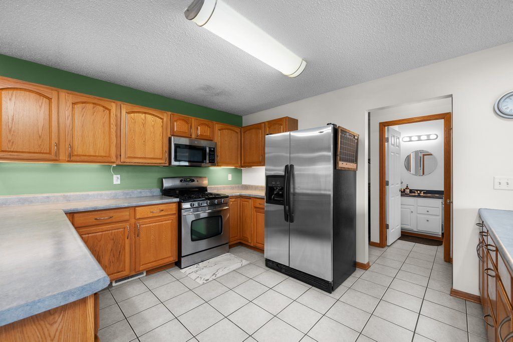 Well-maintained ranch offering 3 bedrooms, 2.5 bathrooms, and a functional open-concept layout and 3-car attached garage with fenced in yard! Main living area features hardwood floors with seamless flow to dining space and kitchen, offering a great setup for everday living or entertaining. All appliances stay in this spacious kitchen has ample cabinetry & countertops. Primary suite features a walk-in closet and en-suite bathroom near two additional bedrooms situated on either side of full bathroom. Half bath conveniently located near kitchen, laundry room and garage. Sump pump beneath house in crawl space on battery backup. LP tank stays with the house and was recently filled. Third stall of garage passes through to yard for easy access to backyard. Per trust: recent updates include new roof, gutters, soffit, windows and siding in 2025. House being offered as-is!