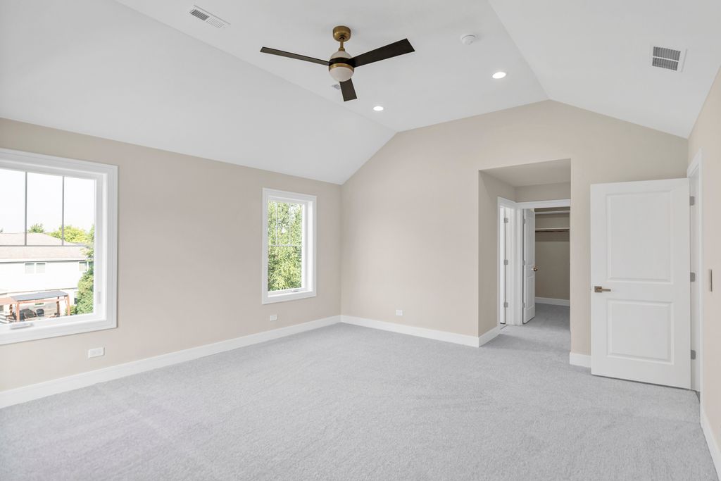 Brand new custom 4-bedroom home in the desirable Alpine Heights of Orland Park! Step into an inviting entryway with soaring ceilings and a stunning oak staircase featuring wrought iron spindles, opening to a spacious living room with a stylish electric fireplace and a wall of windows that fills the space with natural light. The chef's kitchen is a showstopper with a large island/breakfast bar, beautiful 42" cabinets with crown molding, quartz countertops, stainless steel appliances, tile backsplash, and a coffee bar with wine fridge. The main level also offers a laundry room with a sink and a convenient powder room. Upstairs, the expansive primary suite features vaulted ceilings, a walk-in closet with built-in organizers, and a spa-like bath with double sinks and a custom shower with a rain showerhead. Three additional generously sized bedrooms and a full bath complete the second floor. The unfinished English basement offers endless possibilities for future living space. Outside, relax or entertain on the deck. Ideally located near shopping, restaurants, schools, and with easy interstate access-this is the one you've been waiting for!