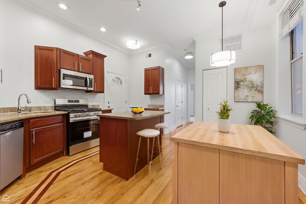 Bronzeville Elegant Expansive 2 bedroom 2 bath Set in Intimate Boutique Walk Up. Offers an Exceptional Opportunity with Unparalleled Value. Intelligent Balanced Floorplan, Flooded with Natural Light, Gleaming Hardwood Floors with Cherry Border, Exposed Brick, Coiffured Ceilings, Professional Kitchen, All Stainless Appliances, Granite Countertops with Island Curated Modernist Guest Bath with Glass Shower, Sequestered Primary suite with Pro Closet System, High Style Decadent Spa Bath, Whirlpool/Shower, Vessel Bowl Sinks, Combination with Designed Lighting and Mirror. Premium Window Treatments, Closet Organizers, Laundry Center, 1 Outdoor Secured Parking Space and Achosa 1 year Home Warranty included in sale. Professionally Managed HOA, Hyper Convenient to Green Line, Lakefront, U of C, and Retail. Shows like a model. Virtually Staged and move in ready. Ask about CRA Financing options with $$ towards closing costs and low LTV down for qualified buyers
