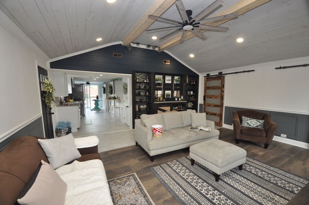 Come and relax in this 3 bedroom home with a cozy cottage atmosphere. Walking distance to the Association Park. Nothing to do here but move in and enjoy the 4 seasons. Spacious front room with cathedral ceilings, custom built shelving and new easy to maintain flooring. Workable kitchen with new stainless steel appliances, granite counter tops, white cabinets and walk in pantry. Nice size eating area with sliders leading to the spacious deck with a newly built decorative wall. Other new features: washer and dryer, deck wrapping around the side and front of home, garage door opener, flooring, lights, barn doors, bathroom updated and so much more. Seller is selling as is