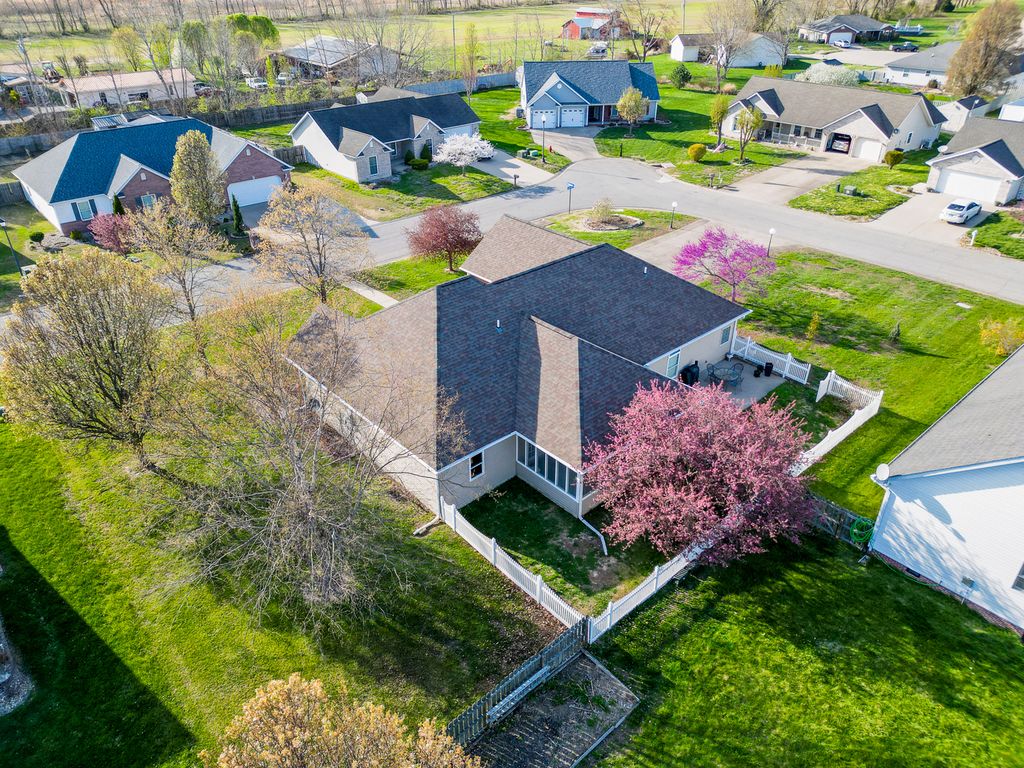 This immaculate, extremely well-maintained home is truly move-in ready and has been freshly painted throughout. Major updates completed in 2021 include a new furnace (described by the installer as a "Cadillac"), roof, water heater, flooring, and kitchen countertops - providing peace of mind for years to come. Additional insulation has been added to improve energy efficiency and help reduce utility costs. The home features a desirable open-concept layout with a spacious living room and a comfortable, well-designed kitchen offering abundant cabinetry, a center island, and a dining area perfect for everyday living or entertaining. A large pantry provides exceptional storage space. The split floor plan ensures privacy, with a generous master suite that includes a large bedroom, ensuite bath and 2 walk-in closets. An additional office space offers flexibility for working from home or relaxing. Enjoy outdoor living in the screened porch or host gatherings on the patio - ideal for grilling and spending time with family and friends. The attached 2 car garage includes a dedicated mechanical room for added convenience. Situated on a corner lot in a quiet cul-de-sac, this beautiful home is located in one of Marion's most desirable subdivisions. A truly exceptional property you won't want to miss!