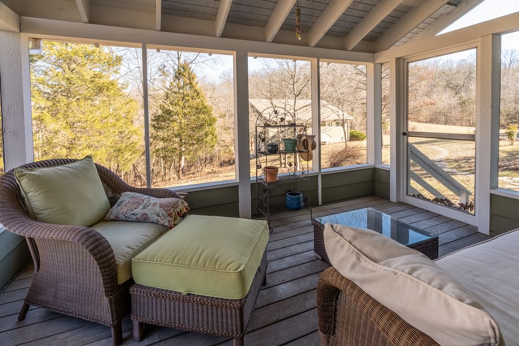 Where every day feels like a getaway, nestled on just under 46.73 acres in the heart of Southern Illinois along the Shawnee Hills Wine Trail, this stunning country retreat offers the perfect blend of privacy, craftsmanship, and natural beauty. Built in 2013 and inspired by renowned architect Ross Chapin, the main home features 3 bedrooms, 2.5 baths, and an open-concept design filled with natural light from oversized custom Andersen windows. Thoughtful details shine throughout, including roughhewn maple hardwood floors, quartz countertops, custom cabinetry and a cozy free-standing propane stove. Enjoy peaceful mornings and scenic views from the private screened porch off the main-floor suite. A beautifully designed 665 Sq. Ft guest house provides additional living space with its own full bath, screened porch, loft, and mini-split system-- ideal for guests or a private retreat. The land it truly exceptional, featuring a winding 1/4-mile driveway, mature timber, trail systems, creeks, natural springs, and abundant wildlife - perfect for hiking, hunting, or simply enjoying nature. Additional highlights include a whole-house generator (serving both homes), detached 2-car garage, and a serene hilltop setting with breathtaking views. A rare opportunity to own a private, turnkey property in the Shawnee National Forest region - where luxury meets the outdoors.