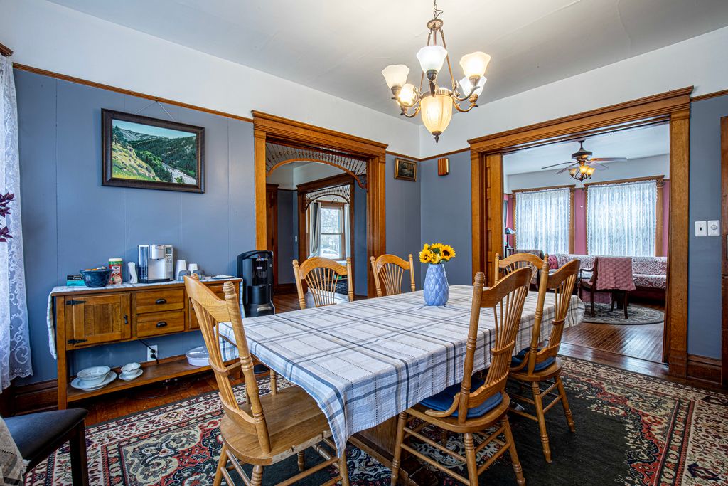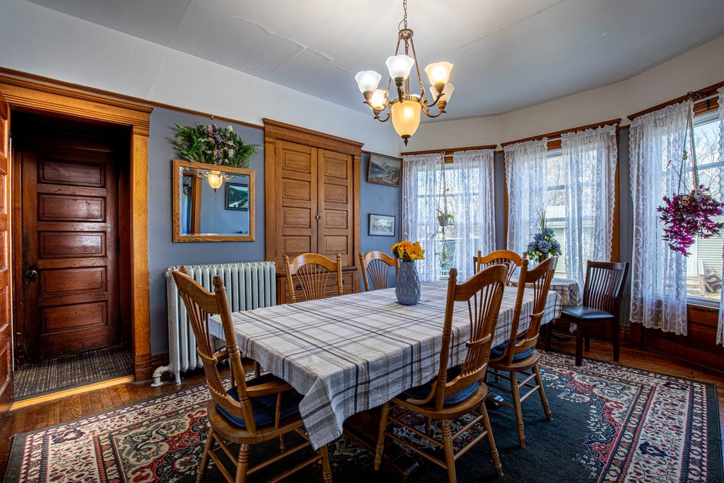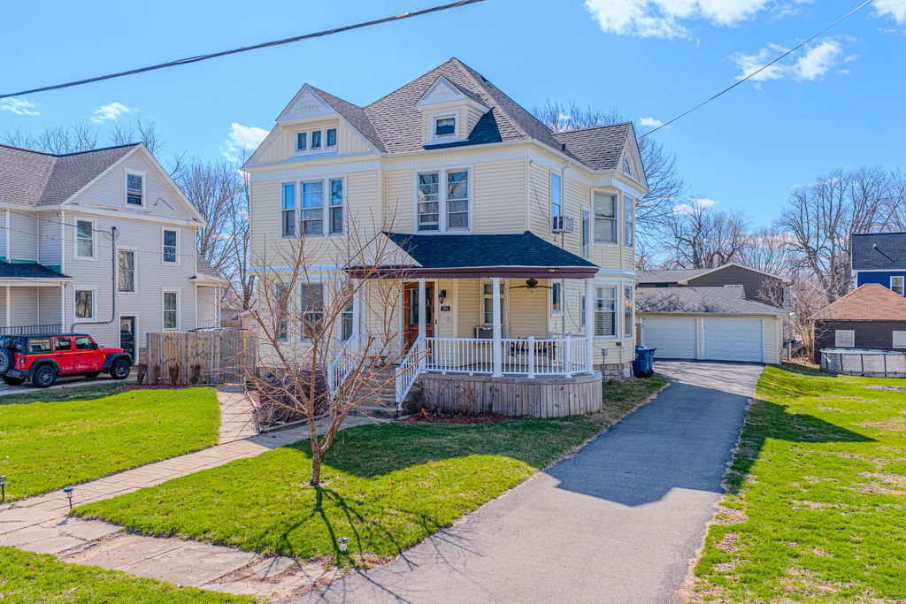 Step back into time with this stunning Victorian home, built in 1894, offering 2542 square feet of timeless elegance. This four bedroom residence boasts exquisite woodwork, original pocket doors, and intricate trim throughout. A grand foyer welcomes you with a built-in bench and a beautiful staircase that ascends gracefully to the upper level. The home features a spacious living room, formal dining room, and an inviting sitting room, perfect for everyday living or entertaining. The kitchen includes a charming eat-in area for casual meals. Upstairs, two of the bedrooms showcase beautiful hardwood floors, adding warmth and character. The primary suite features a cozy sitting room, perfect for relaxation. Additional highlights include beautiful built-ins, an unfinished attic and basement. Outside, enjoy a fully fenced backyard complete with a deck-ideal for gathering, outdoor dining, or quiet evenings. The property also includes a 2 1/2 car detached garage and an asphalt driveway, providing ample parking and convenience. This is a rare opportunity to own a piece of history.