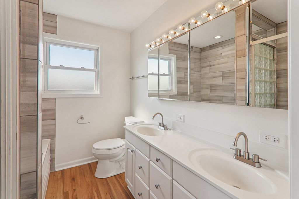 Welcome home to this stunning brick family retreat in the heart of Melrose Park, where classic charm meets a modern, versatile layout designed for the way you live today. This spacious 4-bedroom, 3-full-bath home offers a seamless blend of comfort and functionality, perfect for those who love to entertain. Step inside to a bright newly remodled and inviting home, this open-concept floor plan that flows effortlessly from the inviting living room to the kitchen and into the family room/dining combo. New lighting, fresh paint, new LVP flooring is just the begining. The eat-in kitchen serves as the heart of the home and featurs maple cabinets, and granite counters. The convenience of a full bathroom and a dedicated laundry room on the first floor adds to the home's thoughtful design incuding a standout Primary Suite. This retreat features a walk-in closet and a newly remodeled ensuite with a spa-like fee, boasting a soaker tub, a dual-sink vanity, and a stunning newer tile. Second Bedroom: Includes a large walk-in closet already prepped and ready for a second-floor laundry conversion if desired. Three additional bedrooms share a well-appointed hallway bathroom, ensuring plenty of space for family and guests. Enjoy year-round comfort with a dual-zone HVAC system. Featuring two separate furnaces and AC units-one dedicated to each floor-you'll have precise climate control and energy efficiency throughout the seasons. Wait until you see the ultimate outdoor and garage Setup so the entertainment doesn't stop at the backdoor. The fully fenced-in backyard is an oasis of privacy, featuring a sleek concrete patio and walkway to the garage. The detached two-car garage currently features parking a full built-in bar, perfect for summer hangouts! Prefer more parking? It can easily be converted back to house two vehicles. A side entry door on the garage provides secure, direct access to the yard and ample storage space for all your tools and toys. Don't miss your chance to own this move-in-ready gem that perfectly balances indoor elegance with outdoor fun.