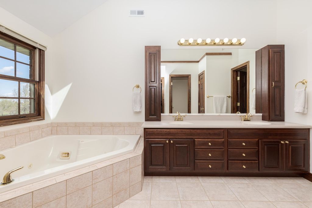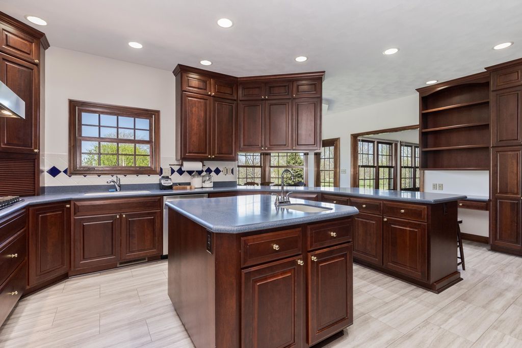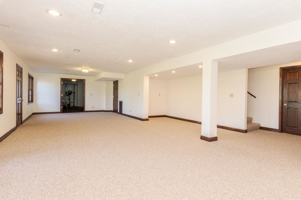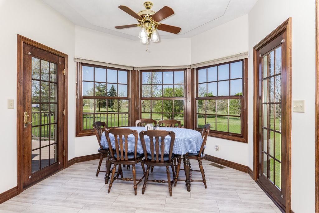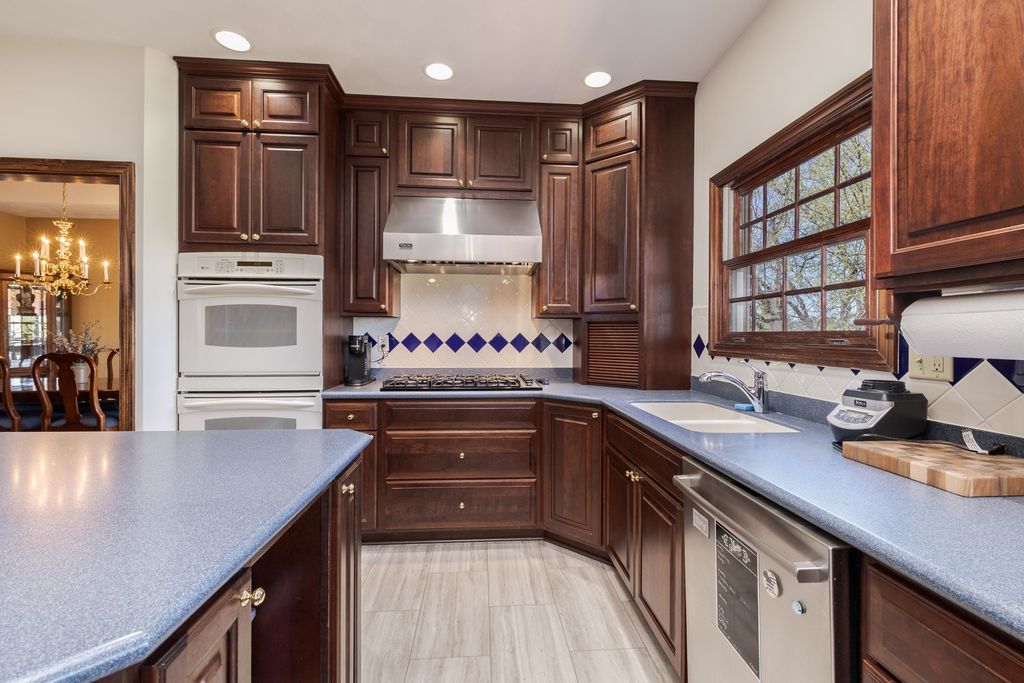 Welcome to this wonderful ALL BRICK walkout 2 story home. Located on a culdesac and the Golf course. Over 4300 finished sq. ft. Main floor Office with french doors and built in's. Living Room and Dining Room with hardwood floors. Sunroom/Sitting Room with many windows. Large chefs Kitchen with abundance of custom cherry Amish cabinets, pullouts drawers, Corian countertops, large eating bar, center island with prep sink, Sub zero refrigerator, double ovens, gas 6 burner cooktop. Family Room with beamed ceiling, wall of windows and mantel surround gas fireplace. First floor Laundry Room with sink. Dual Staircases. Upstairs offers a beautiful Primary suite with hardwood floors an inviting sitting room with many windows, his and hers walk in closets, Bath with cornered jacuzzi tub, shower and separate stool. 3 Large Bedrooms all with amazing closet space and 2 with hardwood floors. Full Bath with 2 sinks, tub/shower and huge linen closet. Great Walk out Basement with a Family Room/Recreation space, Exercise room w/rubber floor, Plenty of space in the Storage Room. Bath rough in. Incredible new composite Deck 4/2026 overlooking the large yard. New roof 4/2026