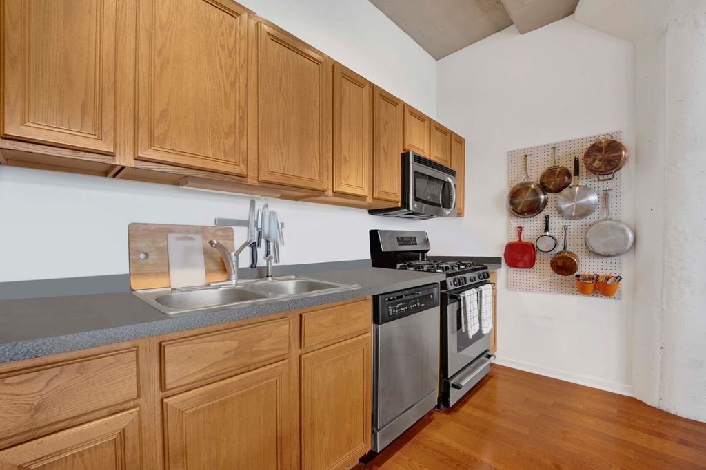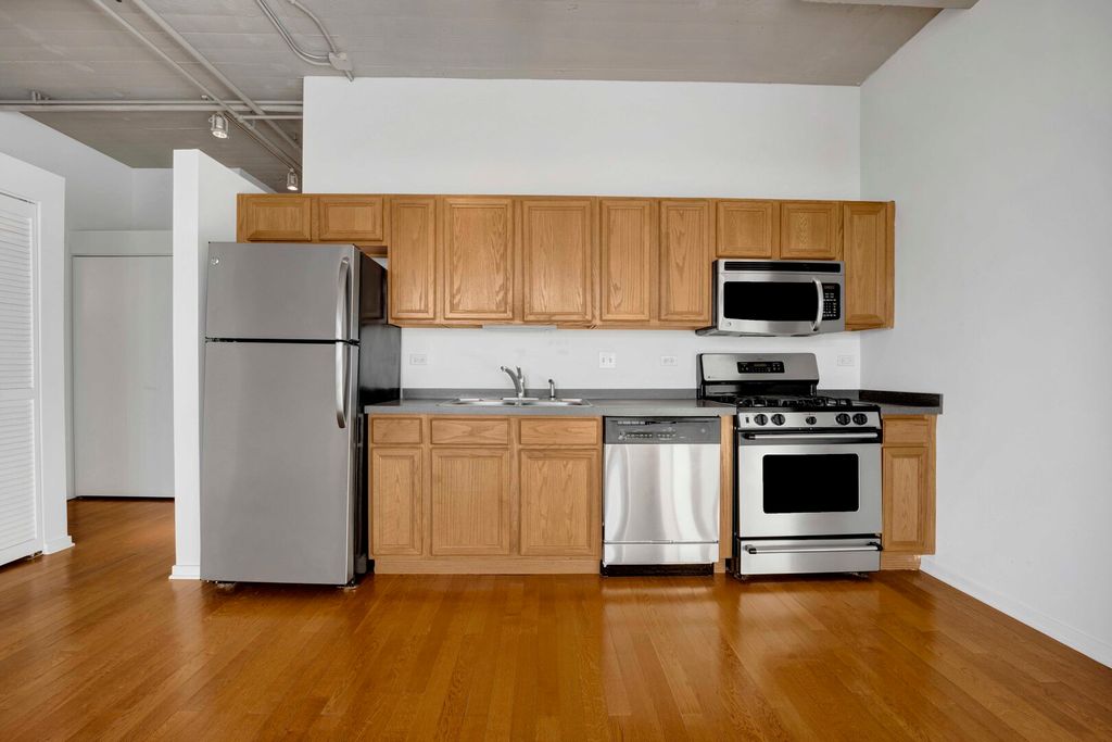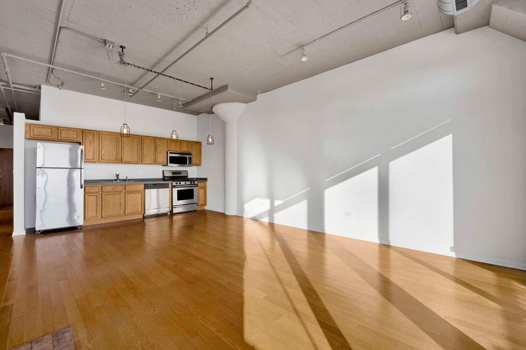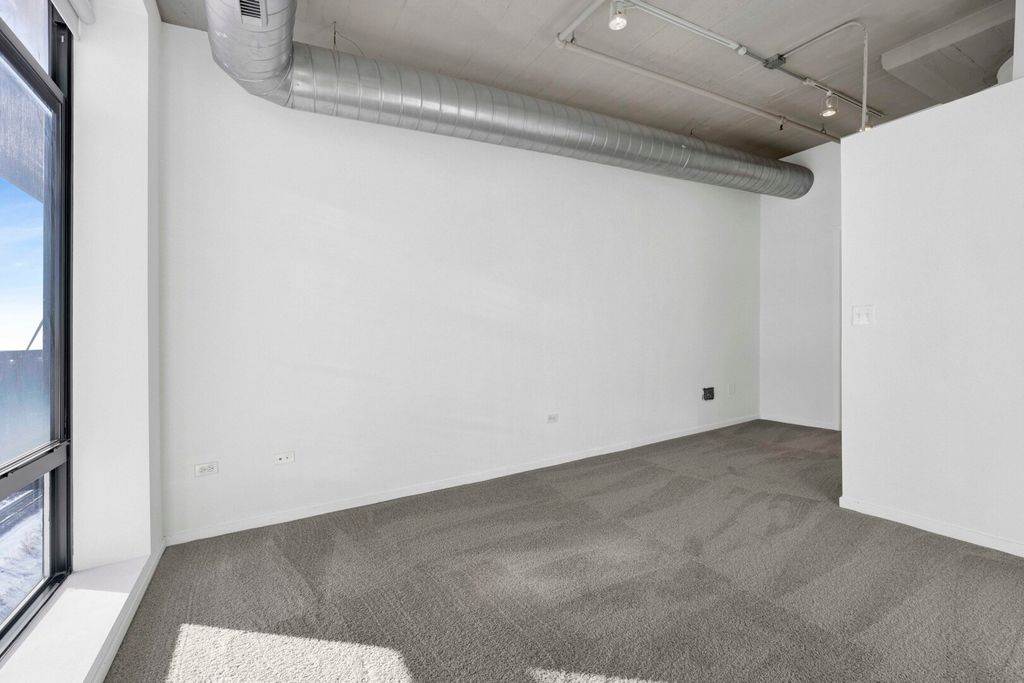 Brighten your days in this unique and spacious, sun soaked, 1 bedroom (plus den) South facing unit! This unit was just freshly painted and refreshed with brand new carpets in the bedroom and den. Open floor plan with fireplace and direct access to large private balcony, creating a seamless indoor outdoor environment. Hardwood floors and additional shelving has been added. Upgraded lighting adds to the industrial charm throughout. Well appointed kitchen with ample cabinetry and stainless steel appliances. Island has been removed, creating a more open concept for the next owner. Retreat to the primary bedroom with a generously sized walk-in closet. The convenience of an in-unit washer and dryer. Secure heated garage parking spot is INCLUDED in the price. Amenities include door staff, high-speed internet, TV cable, workout room, bike and storage room, secured package room, onsite management, exceptional landscaping, and snow removal. Embrace the carefree lifestyle of University Village Lofts, adjacent to the youthful energy of UIC, the pulse of Pilsen and the ever evolving West and South Loop. University Village offers 7 parks, athletic fields, two playgrounds, pet areas, and grounds to stroll and explore. Conveniently located to all expressways, CTA, Metra, Blue and Pink lines. Welcome home!