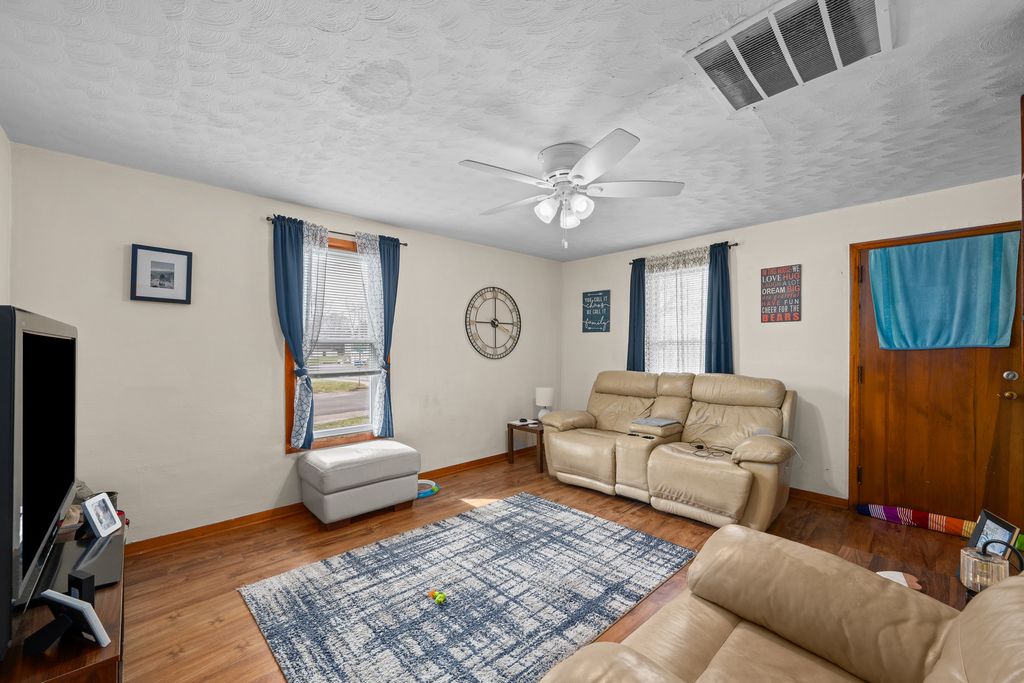 Small Town Living! Check out this 2-bed 1-bath Blue Grass home! Primarily bedroom & bathroom on the main level. Upper level could be used as 3-bedrooms. Basement is great for storage and has been waterproofed. Detached 634sqft garage. Many updates over the years. Schedule your showing today!