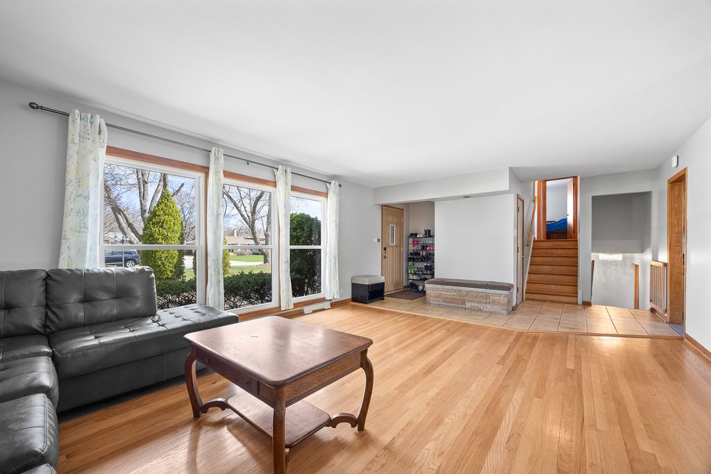 Beautifully maintained and cared for by the owners! Fantastic 3 bedroom 2 bath Palos Heights split level situated on a quiet street. It features hardwood floors throughout, fresh paint, a bright living room and a formal dining area. The kitchen offers oak cabinets with stainless steel appliances, granite countertops and a ceramic tile floor .The second level has a spacious master bedroom, a full bath and additional 2 good sized bedrooms. The walkout lower level has an inviting family room with wood burning fireplace, full bath with walk-in shower, a folding room and a laundry room with a sink. Fully fenced yard with a deck. Newer: soffit (2022), gutters (2022), windows(2018), A/C (2024), furnace (2024), roof partially repaired (2022), sub pump (2021), garage door (2018), basement ejector pump (2019), kitchen floor (2021),electric car charger (2024). Great location near Lake Katherine Nature Center and Botanic Gardens, parks, shopping , restaurants and quick access to I-294.