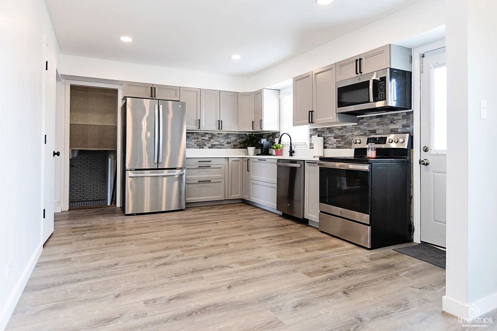 Take a peek at this totally updated split in the desirable Mending Wall subdivision. Upon entry, you're greeted with a massive living room that flows seamlessly into the sun-filled dining space and fully updated kitchen, boasting new cabinets, classy quartz countertops, gorgeous backsplash, a pantry, new flooring and stainless steel appliances. Three bedrooms are on the second level, all with new flooring and paint; the primary has an ensuite with a brand new vanity, toilet and chic fixtures. The main bath is updated as well. The spacious lower-level family room features a beautiful wood burning fireplace, a bar, an updated half bath and a fresh, clean laundry room. The entire home has been painted throughout prior to listing. This is a gem in a great neighborhood!